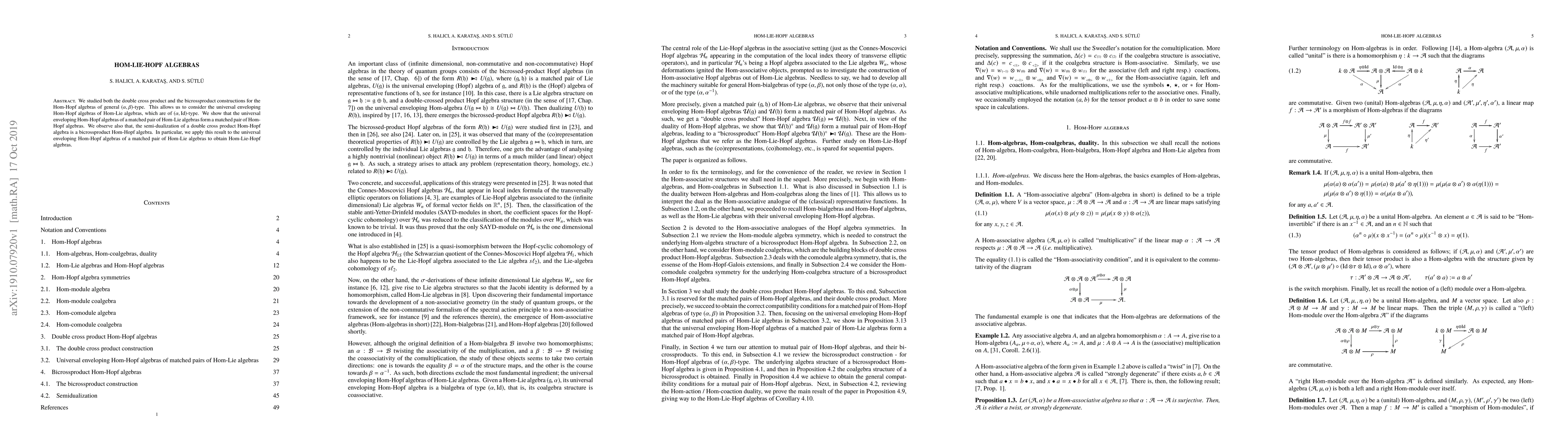 We studied both the double cross product and the bicrossproduct constructions for the Hom-Hopf algebras of general $(\alpha,\beta)$-type. This allows us to consider the universal enveloping Hom-Hopf algebras of Hom-Lie algebras, which are of $(\alpha,{\rm Id})$-type. We show that the universal enveloping Hom-Hopf algebras of a matched pair of Hom-Lie algebras form a matched pair of Hom-Hopf algebras. We observe also that, the semi-dualization of a double cross product Hom-Hopf algebra is a bicrossproduct Hom-Hopf algebra. In particular, we apply this result to the universal enveloping Hom-Hopf algebras of a matched pair of Hom-Lie algebras to obtain Hom-Lie-Hopf algebras.