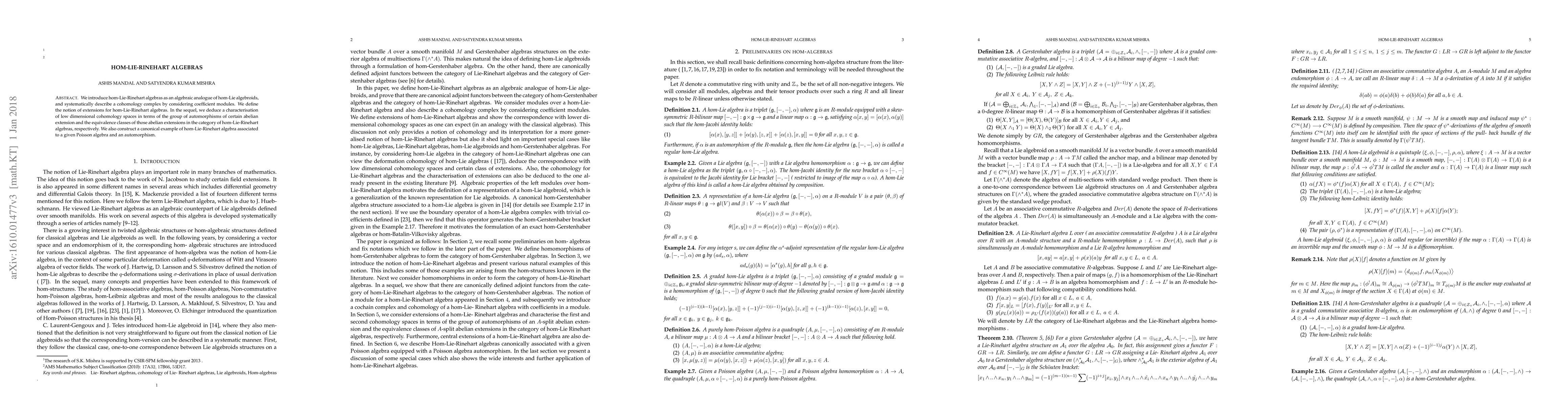This paper introduces hom-Lie-Rinehart algebras, an analogue of hom-Lie algebroids, and develops their cohomology theory. It characterizes low-dimensional cohomology spaces using abelian extensions and automorphisms, and constructs a hom-Lie-Rinehart algebra from a Poisson algebra and an automorphism.