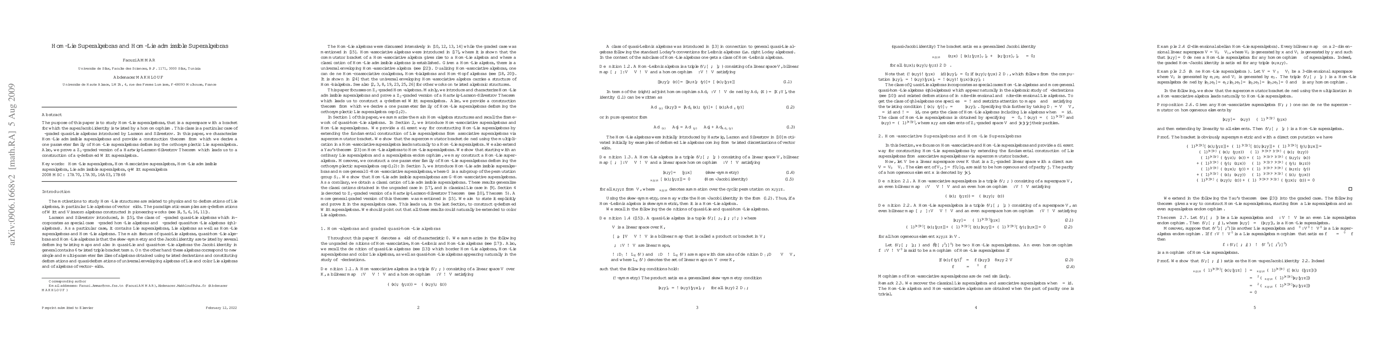 The purpose of this paper is to study Hom-Lie superalgebras, that is a superspace with a bracket for which the superJacobi identity is twisted by a homomorphism. This class is a particular case of $\Gamma$-graded quasi-Lie algebras introduced by Larsson and Silvestrov. In this paper, we characterize Hom-Lie admissible superalgebras and provide a construction theorem from which we derive a one parameter family of Hom-Lie superalgebras deforming the orthosymplectic Lie superalgebra. Also, we prove a $\mathbb{Z}_2$-graded version of a Hartwig-Larsson-Silvestrov Theorem which leads us to a construction of a q-deformed Witt superalgebra.