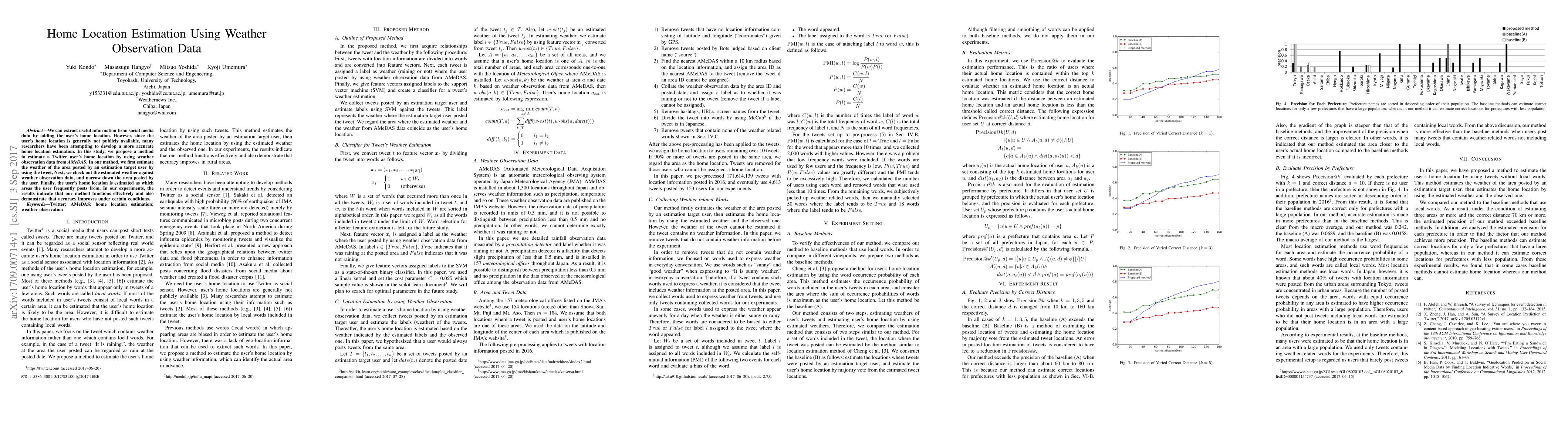 This study proposes a method to estimate Twitter users' home locations using weather observation data from AMeDAS. By comparing tweet-derived weather estimates with actual observations, the method narrows down the user's posting areas, ultimately estimating the home location based on frequent posting locations. Experimental results show effective performance and improved accuracy under specific conditions.