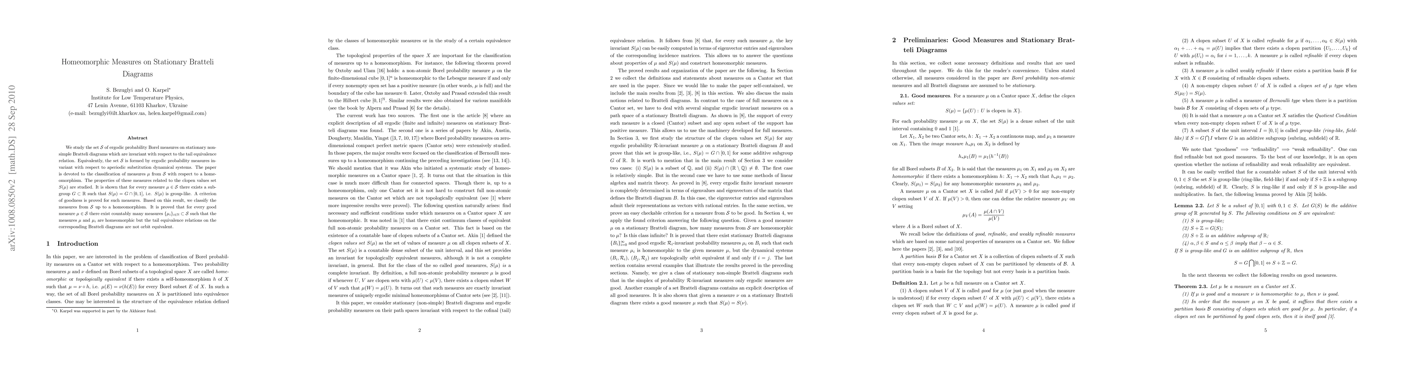 The paper introduces a method for classifying measures on Bratteli diagrams up to homeomorphism and provides a criterion for goodness of these measures, demonstrating that their clopen values set is group-like.