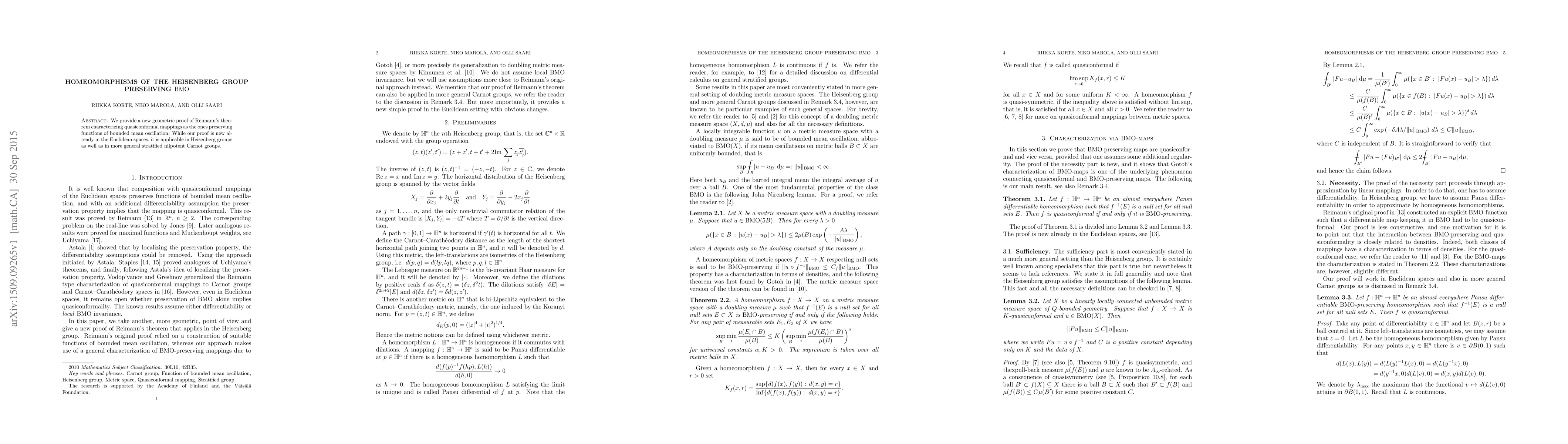 We provide a new geometric proof of Reimann's theorem characterizing quasiconformal mappings as the ones preserving functions of bounded mean oscillation. While our proof is new already in the Euclidean spaces, it is applicable in Heisenberg groups as well as in more general stratified nilpotent Carnot groups.
