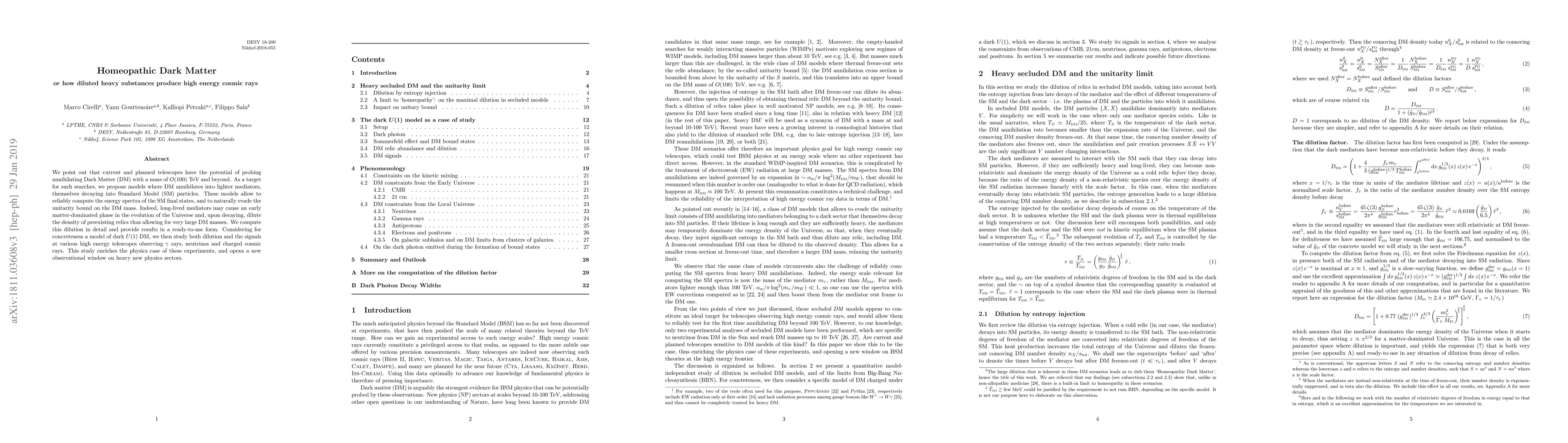 We point out that current and planned telescopes have the potential of probing annihilating Dark Matter (DM) with a mass of O(100) TeV and beyond. As a target for such searches, we propose models where DM annihilates into lighter mediators, themselves decaying into Standard Model (SM) particles. These models allow to reliably compute the energy spectra of the SM final states, and to naturally evade the unitarity bound on the DM mass. Indeed, long-lived mediators may cause an early matter-dominated phase in the evolution of the Universe and, upon decaying, dilute the density of preexisting relics thus allowing for very large DM masses. We compute this dilution in detail and provide results in a ready-to-use form. Considering for concreteness a model of dark U(1) DM, we then study both dilution and the signals at various high energy telescopes observing gamma rays, neutrinos and charged cosmic rays. This study enriches the physics case of these experiments, and opens a new observational window on heavy new physics sectors.
