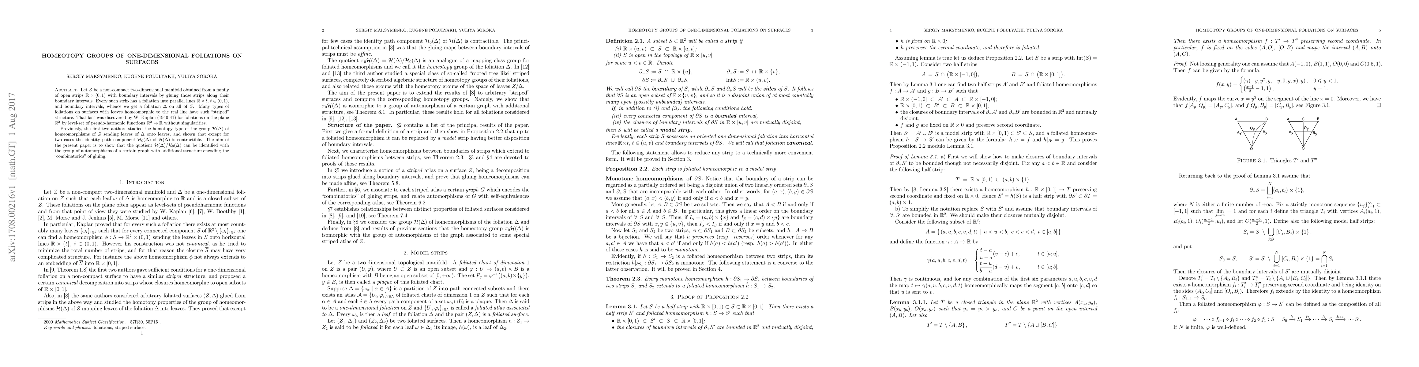 Let $Z$ be a non-compact two-dimensional manifold obtained from a family of open strips $\mathbb{R}\times(0,1)$ with boundary intervals by gluing those strips along their boundary intervals. Every such strip has a foliation into parallel lines $\mathbb{R}\times t$, $t\in(0,1)$, and boundary intervals, whence we get a foliation $\Delta$ on all of $Z$. Many types of foliations on surfaces with leaves homeomorphic to the real line have such "striped" structure. That fact was discovered by W. Kaplan (1940-41) for foliations on the plane $\mathbb{R}^2$ by level-set of pseudo-harmonic functions $\mathbb{R}^2 \to \mathbb{R}$ without singularities. Previously, the first two authors studied the homotopy type of the group $\mathcal{H}(\Delta)$ of homeomorphisms of $Z$ sending leaves of $\Delta$ onto leaves, and shown that except for two cases the identity path component $\mathcal{H}_{0}(\Delta)$ of $\mathcal{H}(\Delta)$ is contractible. The aim of the present paper is to show that the quotient $\mathcal{H}(\Delta)/ \mathcal{H}_{0}(\Delta)$ can be identified with the group of automorphisms of a certain graph with additional structure encoding the "combinatorics" of gluing.