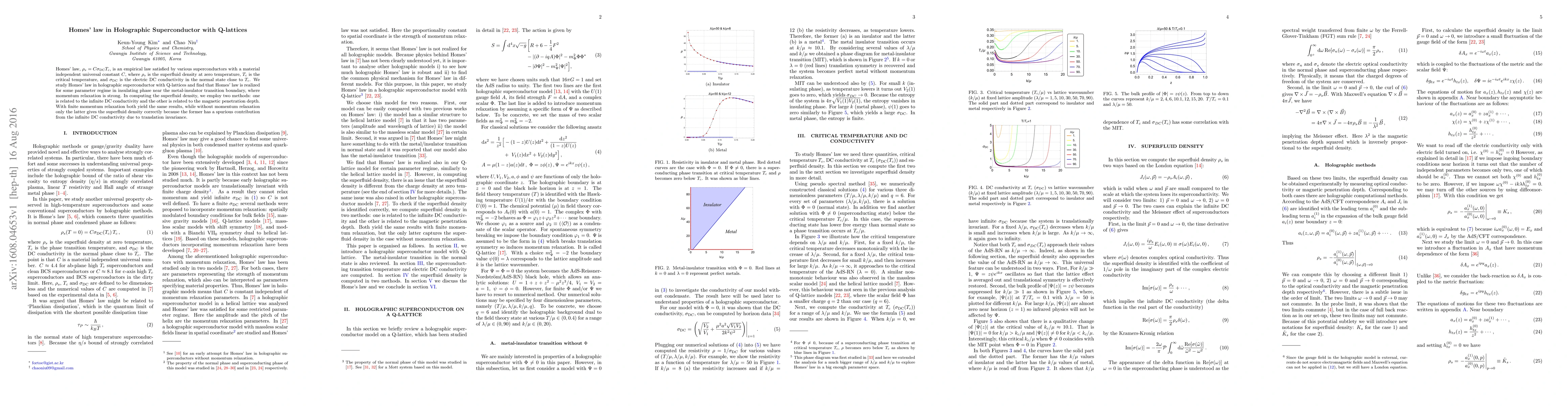 Homes' law, $\rho_s = C \sigma_{\mathrm{DC}} T_c$, is an empirical law satisfied by various superconductors with a material independent universal constant $C$, where $\rho_{s}$ is the superfluid density at zero temperature, $T_c$ is the critical temperature, and $\sigma_{\mathrm{DC}}$ is the electric DC conductivity in the normal state close to $T_c$. We study Homes' law in holographic superconductor with Q-lattices and find that Homes' law is realized for some parameter regime in insulating phase near the metal-insulator transition boundary, where momentum relaxation is strong. In computing the superfluid density, we employ two methods: one is related to the infinite DC conductivity and the other is related to the magnetic penetration depth. With finite momentum relaxation both yield the same results, while without momentum relaxation only the latter gives the superfluid density correctly because the former has a spurious contribution from the infinite DC conductivity due to translation invariance.