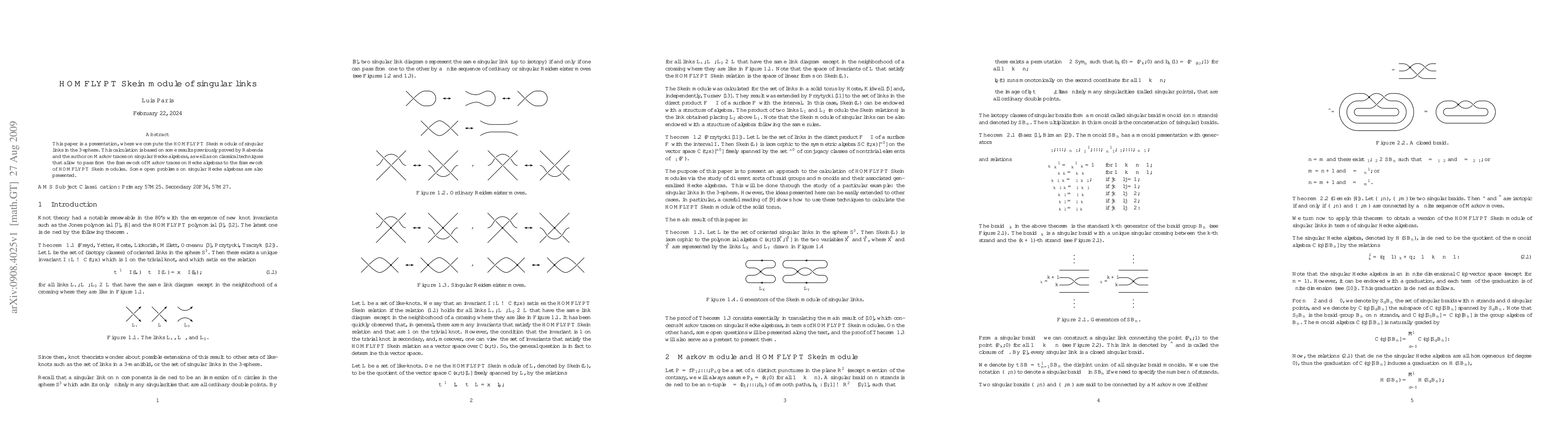 This paper computes the HOMFLYPT Skein module for singular links in the 3-sphere, utilizing results from Rabenda and the author on Markov traces and classical techniques. It also outlines open problems regarding singular Hecke algebras.