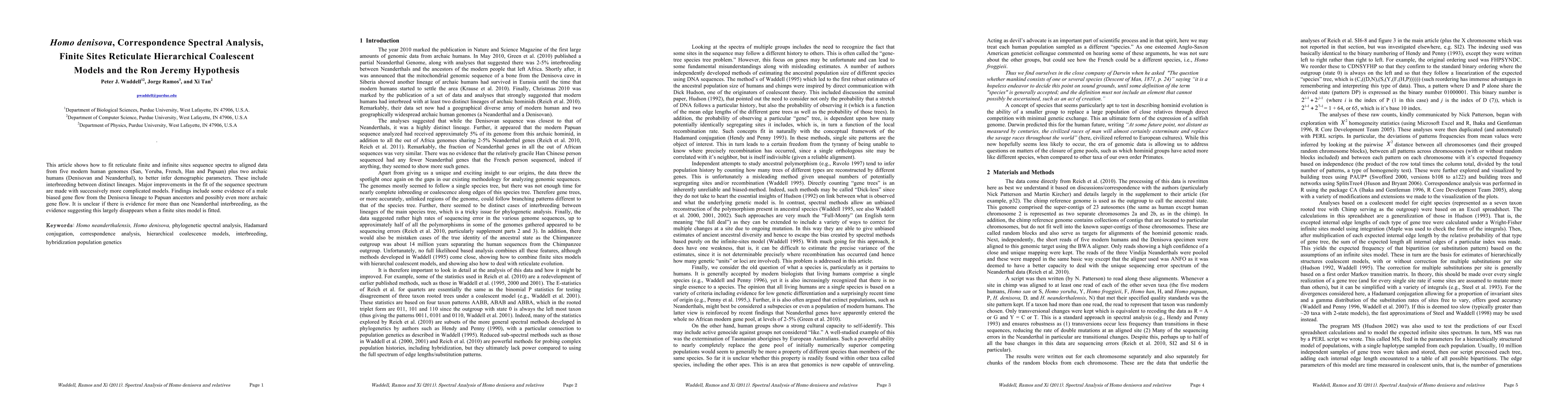 This article shows how to fit reticulate finite and infinite sites sequence spectra to aligned data from five modern human genomes (San, Yoruba, French, Han and Papuan) plus two archaic humans (Denisovan and Neanderthal), to better infer demographic parameters. These include interbreeding between distinct lineages. Major improvements in the fit of the sequence spectrum are made with successively more complicated models. Findings include some evidence of a male biased gene flow from the Denisova lineage to Papuan ancestors and possibly even more archaic gene flow. It is unclear if there is evidence for more than one Neanderthal interbreeding, as the evidence suggesting this largely disappears when a finite sites model is fitted.