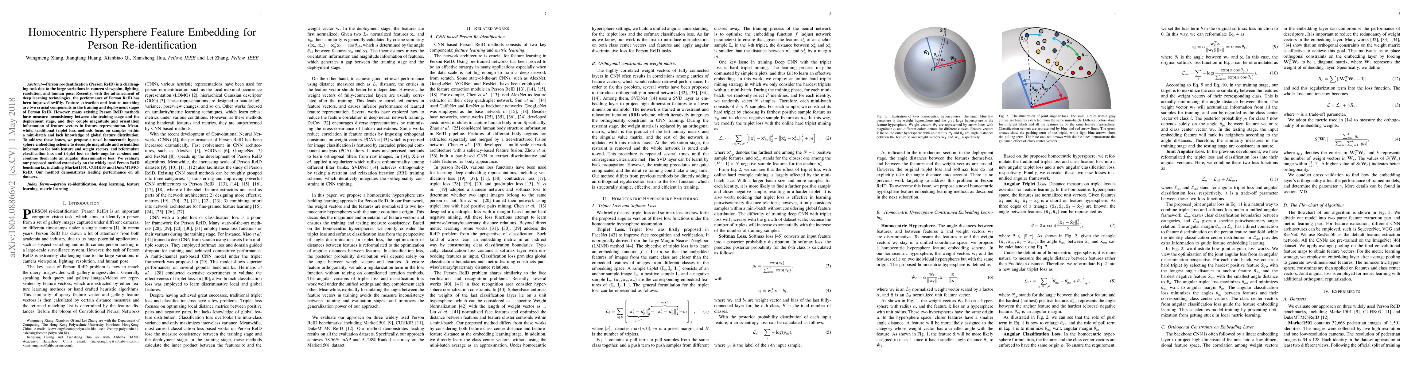 This paper proposes a homocentric hypersphere feature embedding scheme for person re-identification, decoupling magnitude and orientation in feature vectors to improve consistency across training and deployment. The method combines angular discriminative loss with angular triplet loss, achieving leading performance on standard benchmarks.