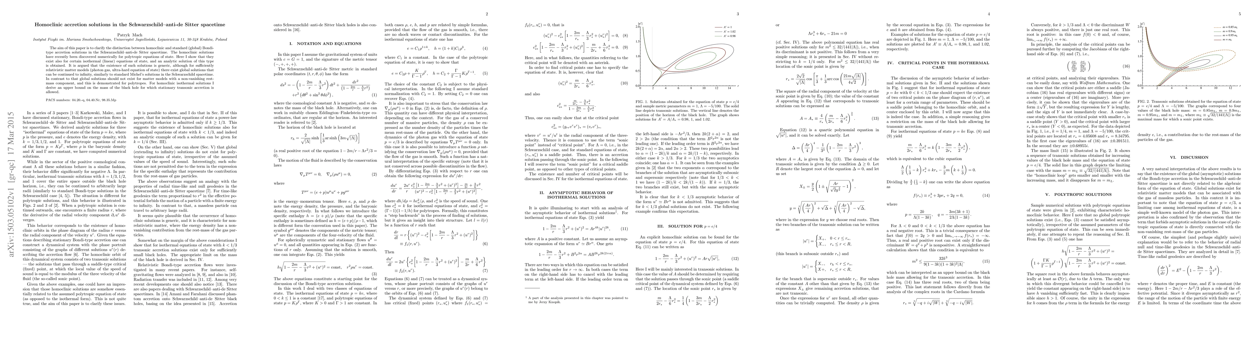 The aim of this paper is to clarify the distinction between homoclinic and standard (global) Bondi-type accretion solutions in the Schwarzschild-anti-de Sitter spacetime. The homoclinic solutions have recently been discovered numerically for polytropic equations of state. Here I show that they exist also for certain isothermal (linear) equations of state, and an analytic solution of this type is obtained. It is argued that the existence of such solutions is generic, although for sufficiently relativistic matter models (photon gas, ultra-hard equation of state) there exist global solutions that can be continued to infinity, similarly to standard Michel's solutions in the Schwarzschild spacetime. In contrast to that global solutions should not exist for matter models with a non-vanishing rest-mass component, and this is demonstrated for polytropes. For homoclinic isothermal solutions I derive an upper bound on the mass of the black hole for which stationary transonic accretion is allowed.