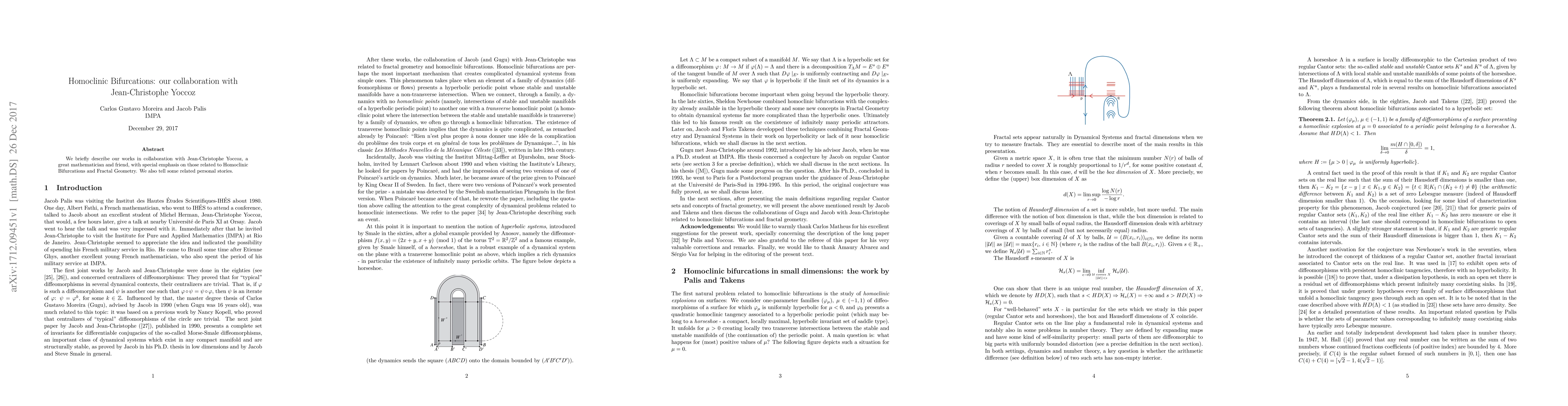 The paper details collaborative works with Jean-Christophe Yoccoz, focusing on Homoclinic Bifurcations and Fractal Geometry, with an emphasis on Palis' conjecture in Ck-topology and dynamical consequences on homoclinic bifurcations.