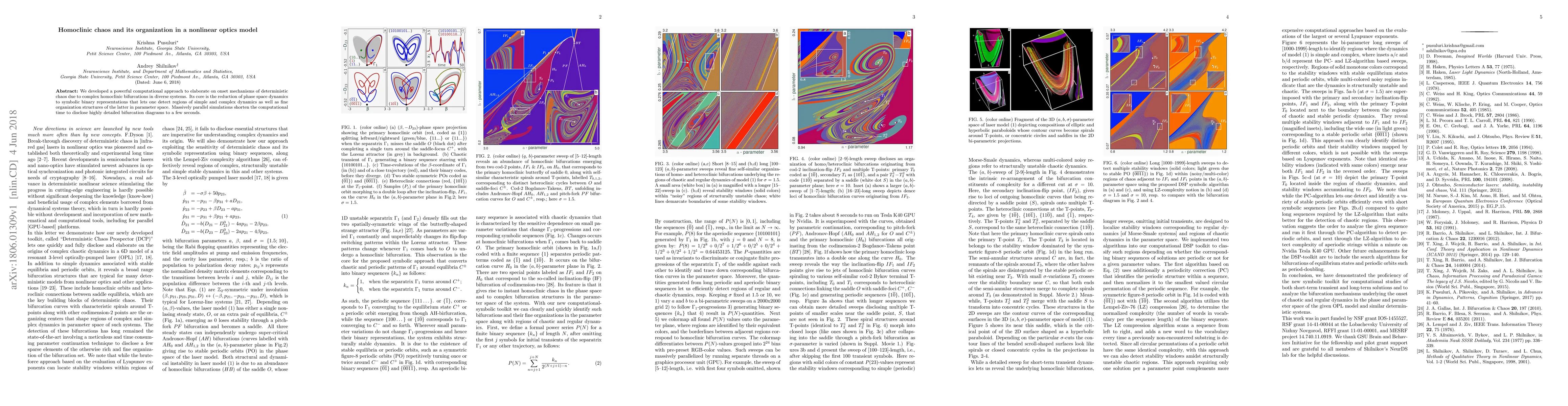 We developed a powerful computational approach to elaborate on onset mechanisms of deterministic chaos due to complex homoclinic bifurcations in diverse systems. Its core is the reduction of phase space dynamics to symbolic binary representations that lets one detect regions of simple and complex dynamics as well as fine organization structures of the latter in parameter space. Massively parallel simulations shorten the computational time to disclose highly detailed bifurcation diagrams to a few seconds.