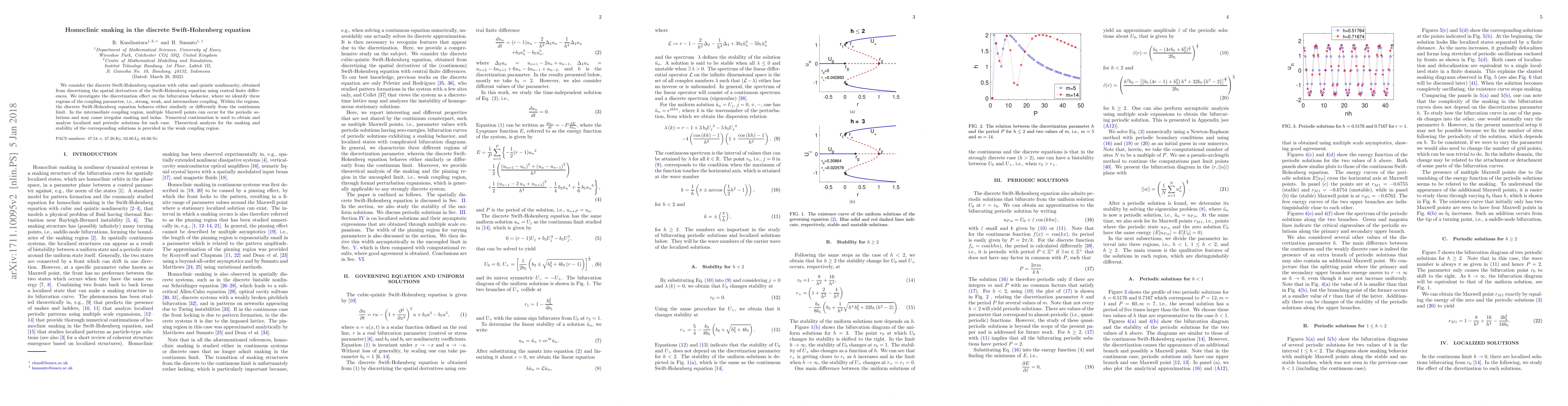 This paper examines the bifurcation behavior of the discrete Swift-Hohenberg equation, identifying three coupling parameter regions where the equation exhibits different dynamics from its continuum counterpart. Numerical continuation reveals complex snaking patterns and stability issues in the intermediate coupling region.