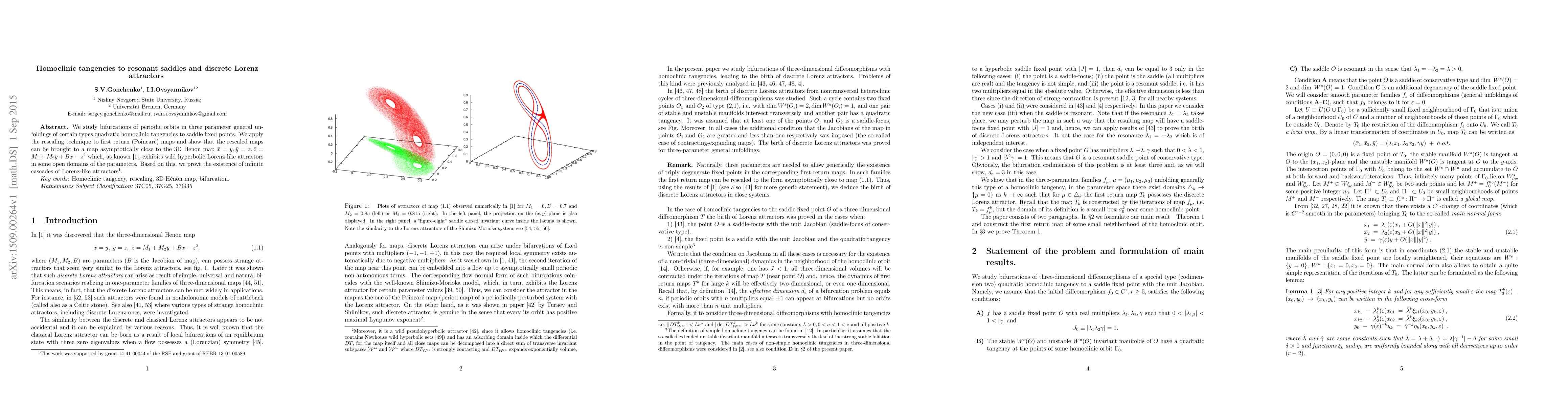 This research explores bifurcations in systems with quadratic homoclinic tangencies, revealing infinite cascades of discrete Lorenz attractors through rescaling techniques applied to Poincaré maps, leading to attractors similar to those in the 3D Hénon map.