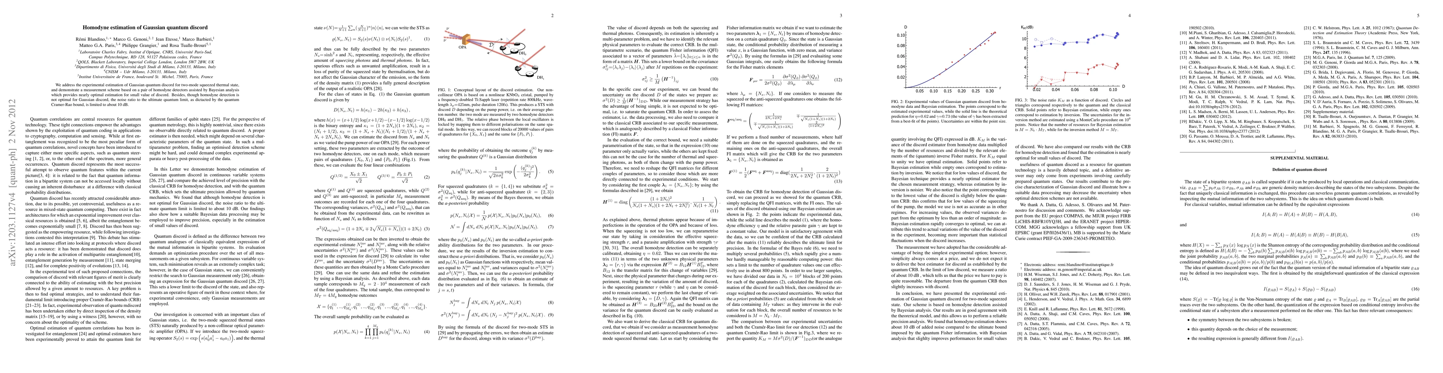 This paper presents a method for estimating Gaussian quantum discord in two-mode squeezed thermal states using homodyne detectors and Bayesian analysis, achieving nearly optimal results for small discord values, with a noise ratio close to the quantum Cramer-Rao bound limit.
