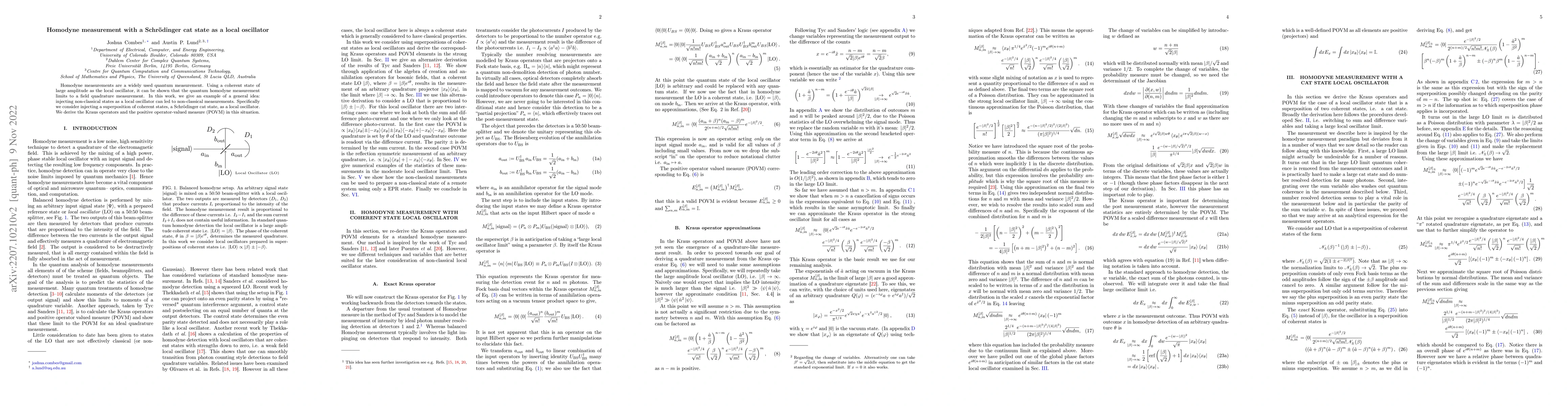 This paper explores the use of a Schrödinger cat state as a local oscillator in homodyne measurements, demonstrating that non-classical states can lead to non-classical measurements. It derives the Kraus operators and POVM for this setup, highlighting the potential for novel measurement techniques.