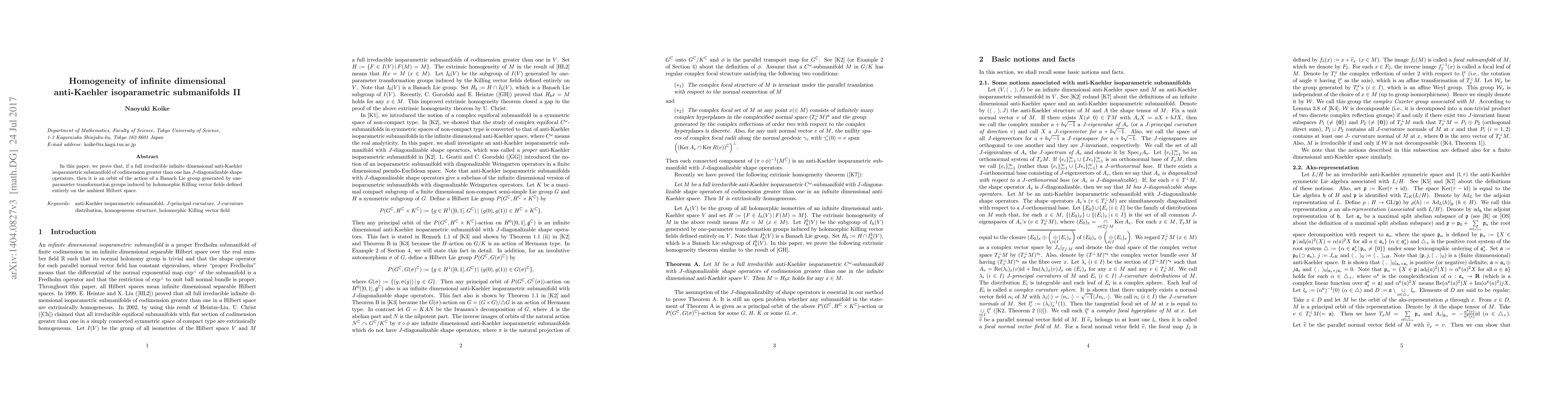 This paper proves that full irreducible infinite dimensional anti-Kaehler isoparametric submanifolds of codimension greater than one with $J$-diagonalizable shape operators are orbits of Banach Lie group actions generated by holomorphic Killing vector fields in the ambient Hilbert space.