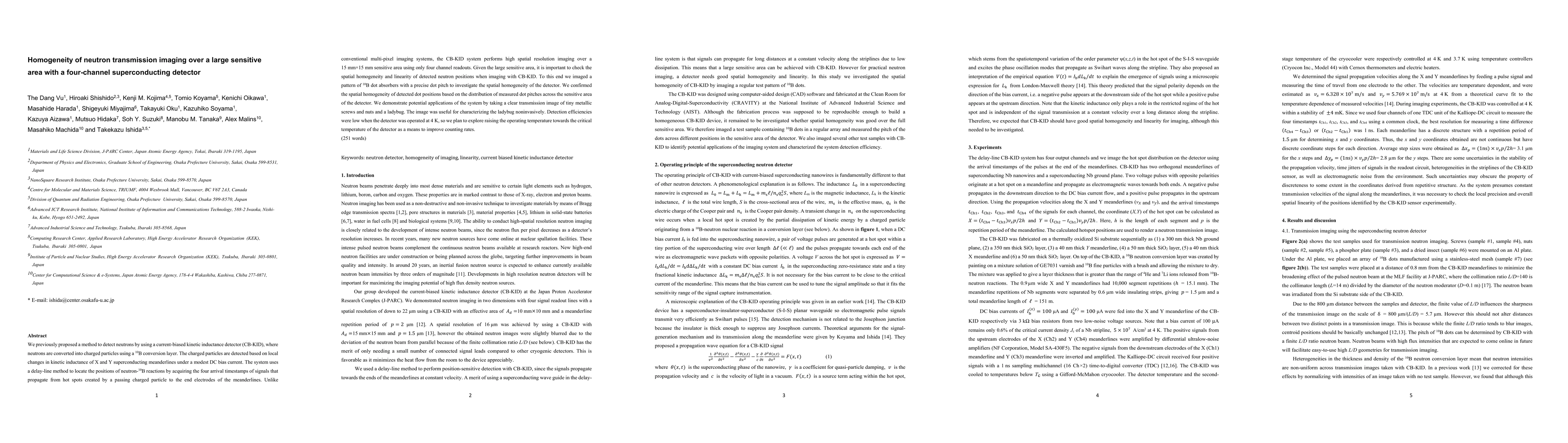 This paper proposes a method for high-resolution neutron imaging using a four-channel superconducting detector with current-biased kinetic inductance detectors (CB-KIDs). The study confirms spatial homogeneity and linearity across a 15 mm x 15 mm sensitive area, demonstrating the potential for applications in imaging tiny metallic objects and even a ladybug.