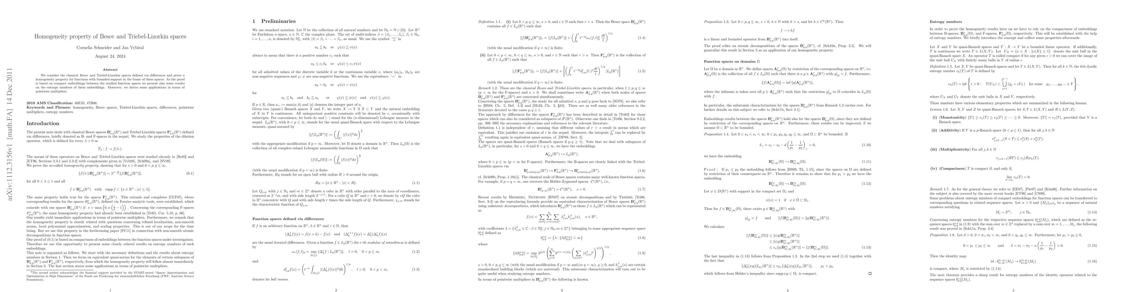 This paper proves a homogeneity property for Besov and Triebel-Lizorkin spaces for functions with bounded support, utilizing compact embeddings and entropy numbers. It also explores applications related to pointwise multipliers.