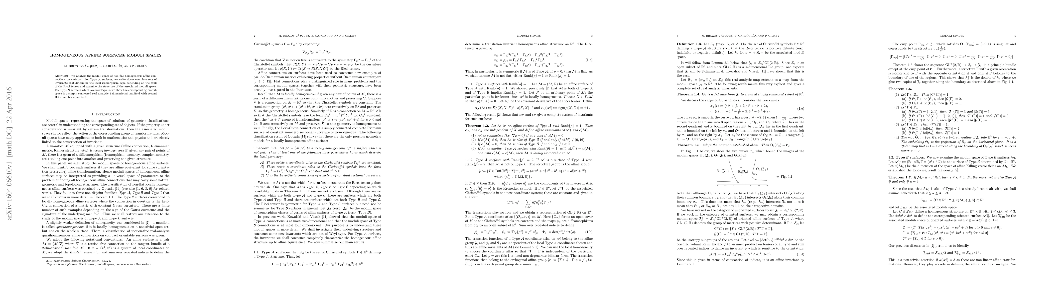 This paper explores the moduli space of non-flat homogeneous affine connections on surfaces, deriving complete sets of invariants for Type $\mathcal{A}$ surfaces and showing that Type $\mathcal{B}$ surfaces' moduli space is a simply connected, 4-dimensional real analytic manifold with a second Betti number of $1$.