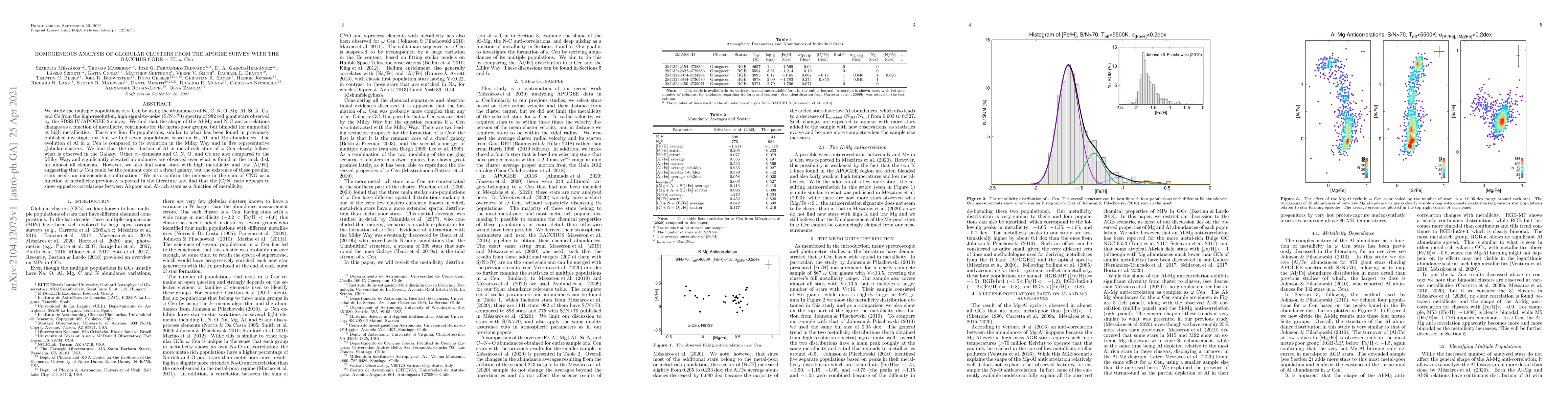 The study of the globular cluster $ au$ Cen reveals four distinct populations of iron and six populations of aluminum and magnesium, with metal-poor groups showing continuous anticorrelations and high- metallicities exhibiting bimodal or unimodal patterns. The findings suggest that $ au$ Cen may be the remnant core of a dwarf galaxy.