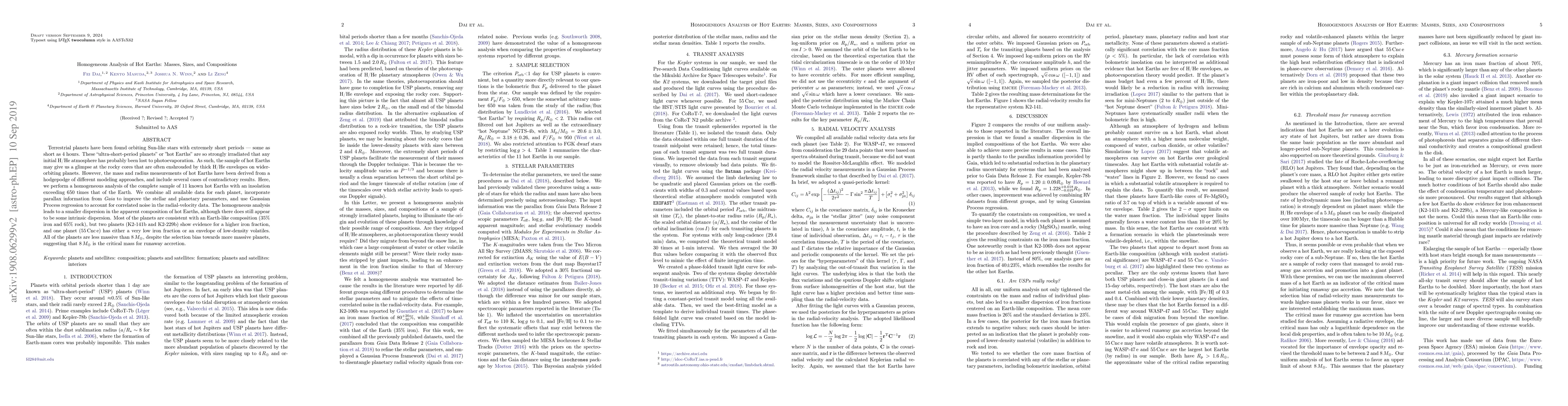 This study conducts a homogeneous analysis of 11 hot Earths to determine their masses, sizes, and compositions, revealing a smaller dispersion in composition compared to previous studies. Most planets exhibit Earth-like compositions, but some show higher iron fractions or low-density volatile envelopes.