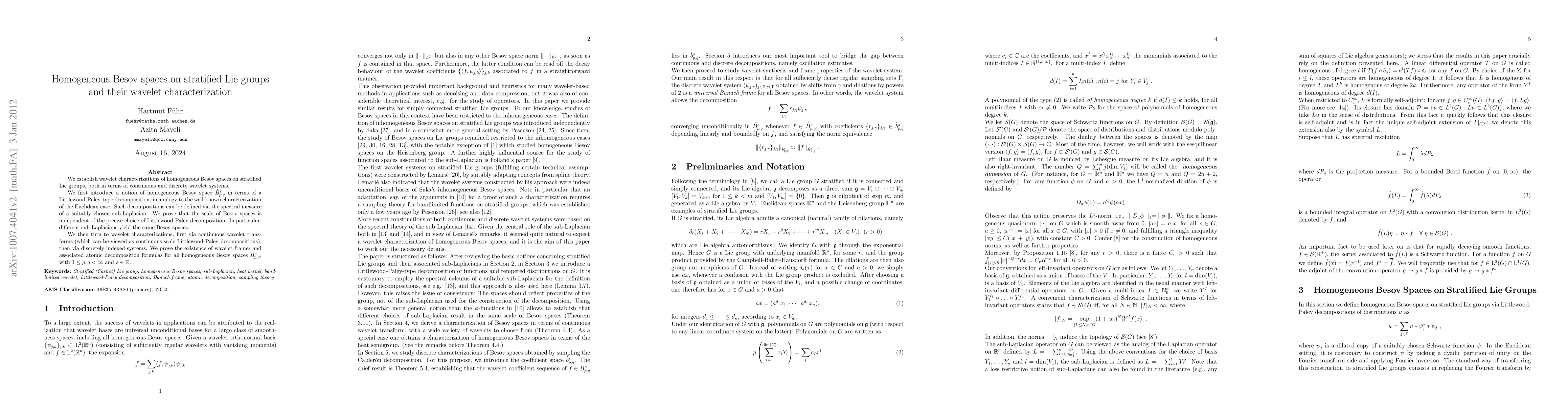 This paper introduces wavelet characterizations of homogeneous Besov spaces on stratified Lie groups, establishing wavelet frames and atomic decompositions. It leverages Littlewood-Paley decompositions and sub-Laplacians to show that Besov spaces remain consistent regardless of the chosen decomposition method.