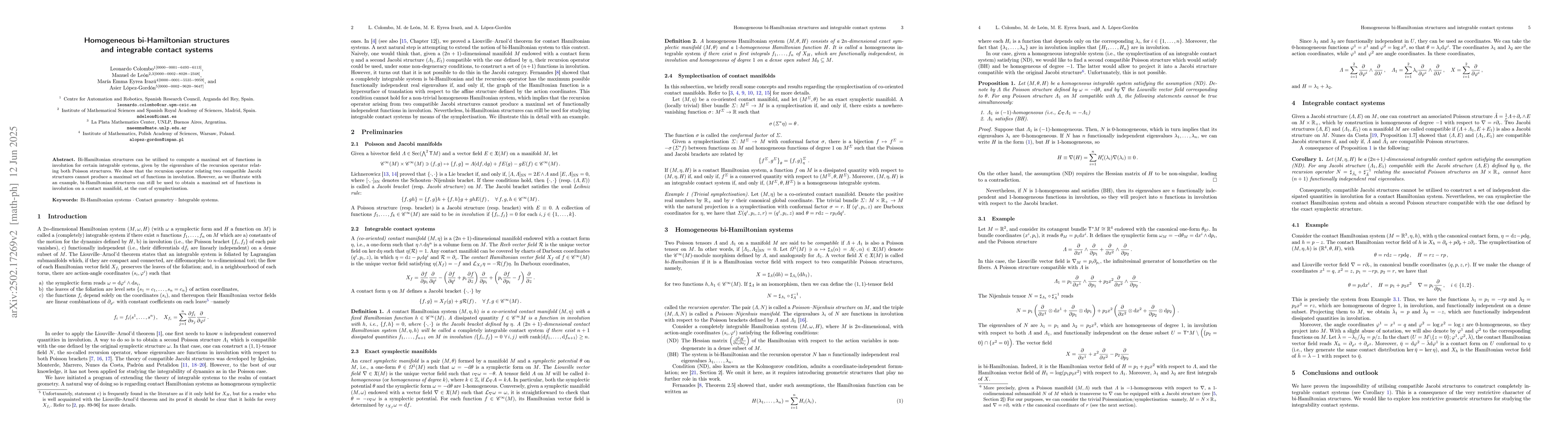 This research contributes to the understanding of integrable systems by clarifying the role of bi-Hamiltonian structures in contact geometry, which has implications for mathematical physics and dynamical systems.