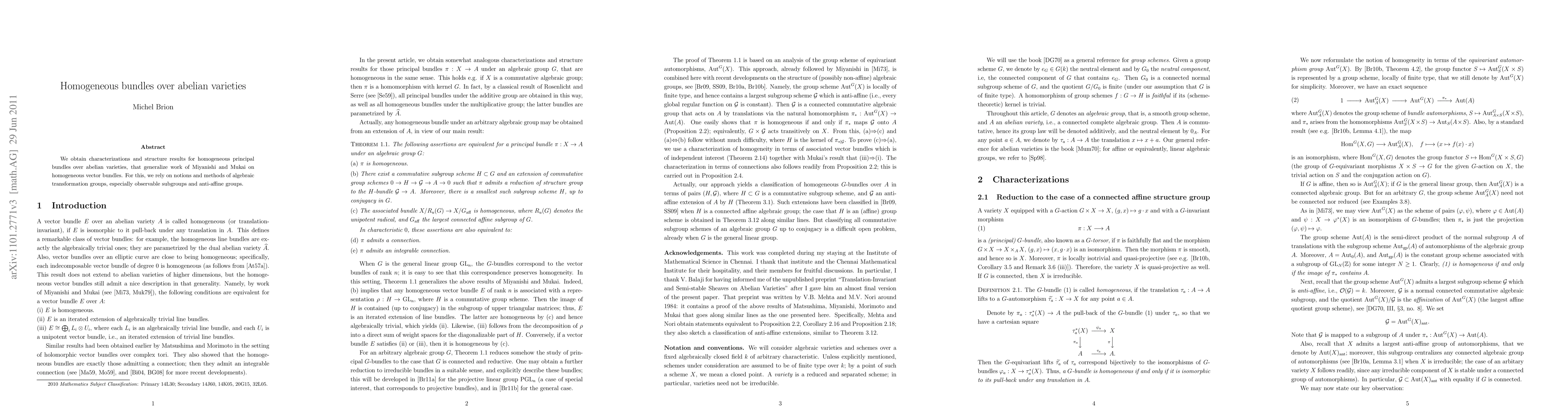 Summary: This paper characterizes and explores the structure of homogeneous principal bundles over abelian varieties, extending prior work on homogeneous vector bundles using concepts from algebraic transformation groups, focusing on observable and anti-affine groups.