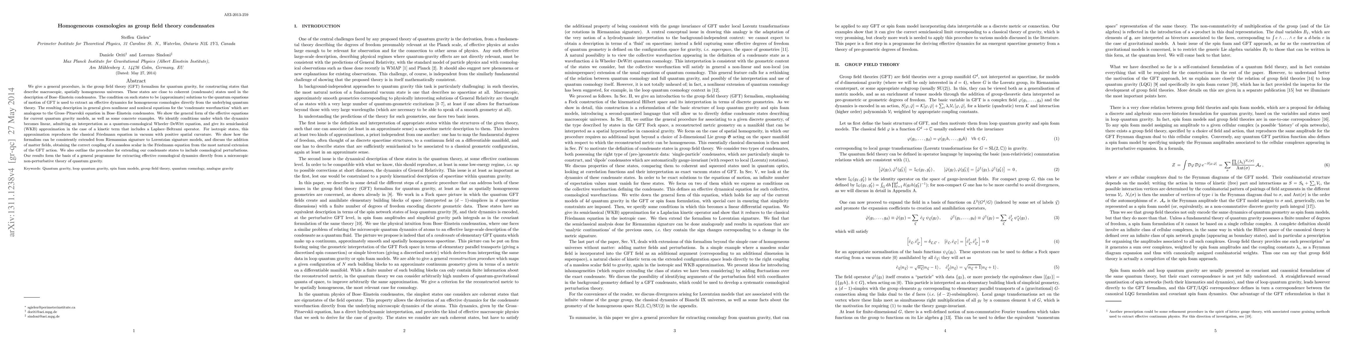 Researchers developed a method to extract effective equations of motion for homogeneous cosmologies from quantum gravity using group field theory condensates, which resemble Bose-Einstein condensate states.