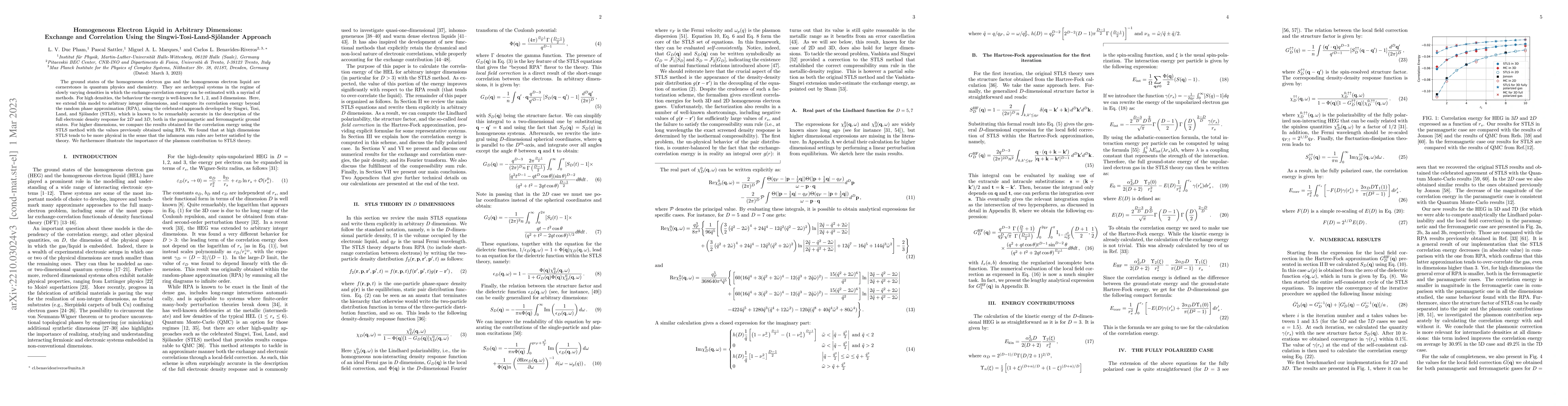 This paper extends the homogeneous electron liquid model to arbitrary dimensions and computes its correlation energy using the STLS approach, finding it more accurate than RPA for higher dimensions, especially in satisfying sum rules, and highlights the significance of the plasmon contribution in STLS theory.
