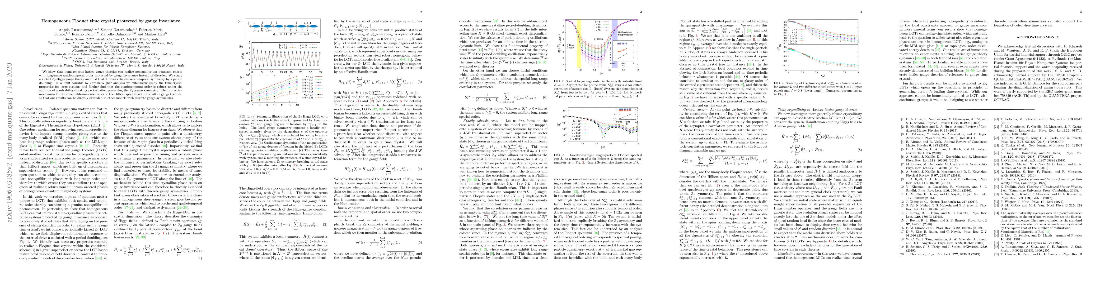 The research demonstrates that homogeneous lattice gauge theories can sustain nonequilibrium quantum phases with extended spatiotemporal order, protected by gauge invariance rather than disorder. By studying a kicked Z2-Higgs gauge theory, the study finds a temporal symmetry breaking through period doubling, and establishes the robustness of this spatiotemporal order even under perturbations preserving Z2 gauge symmetry. This protection mechanism, rooted in the Hilbert space structure of lattice gauge theories, can be applicable to other models with discrete gauge symmetries.