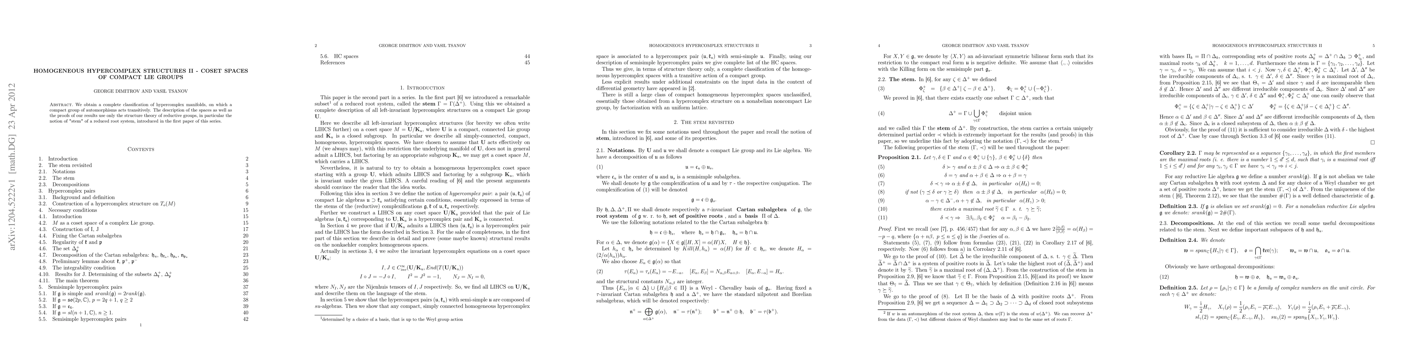 We obtain a complete classification of hypercomplex manifolds, on which a compact group of automorphisms acts transitively. The description of the spaces as well as the proofs of our results use only the structure theory of reductive groups, in particular the notion of "stem" of a reduced root system, introduced in the first paper of this series.