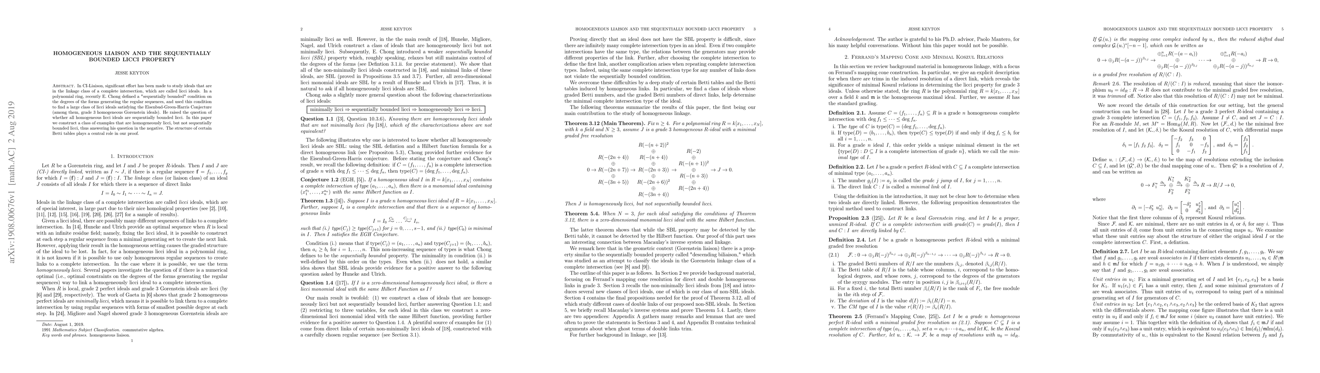In CI-Liaison, significant effort has been made to study ideals that are in the linkage class of a complete intersection, which are called licci ideals. In a polynomial ring, recently E. Chong defined a "sequentially bounded" condition on the degrees of the forms generating the regular sequences, and used this condition to find a large class of licci ideals satisfying the Eisenbud-Green-Harris Conjecture (among them, grade $3$ homogeneous Gorenstein ideals). He raised the question of whether all homogeneous licci ideals are sequentially bounded licci. In this paper we construct a class of examples that are homogeneously licci, but not sequentially bounded licci, thus answering his question in the negative. The structure of certain Betti tables plays a central role in our proof.