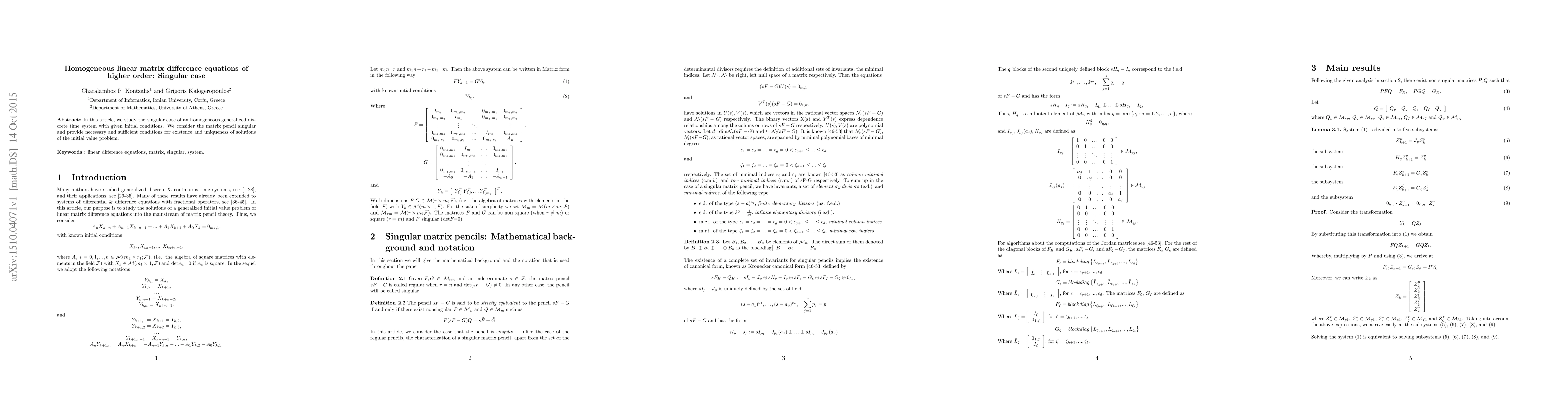 Researchers studied the singular case of homogeneous generalized discrete time systems with initial conditions, finding necessary and sufficient conditions for solution existence and uniqueness.