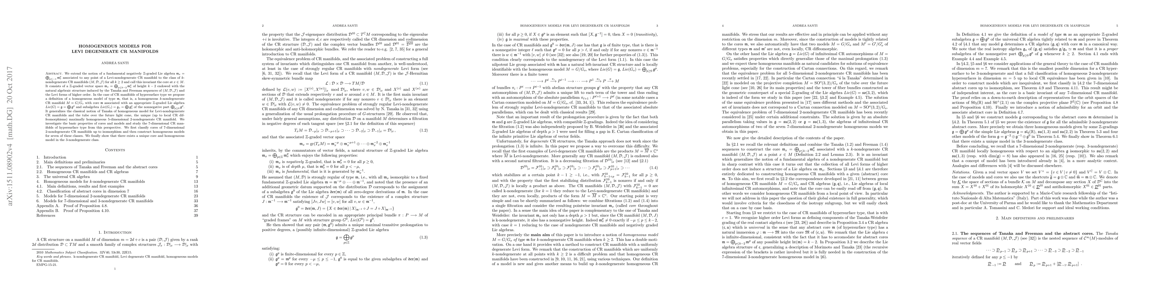We extend the notion of a fundamental negatively $\mathbb Z$-graded Lie algebra $\mathfrak{m}_x=\bigoplus_{p\leq -1}\mathfrak{m}_x^p$ associated to any point of a Levi nondegenerate CR manifold to the class of $k$-nondegenerate CR manifolds $(M,\mathcal D,\mathcal J)$ for all $k\geq 2$ and call this invariant the core at $x\in M$. It consists of a $\mathbb Z$-graded vector space $\mathfrak{m}_x=\bigoplus_{p\leq k-2}\mathfrak{m}_x^p$ of height $k-2$ endowed with the natural algebraic structure induced by the Tanaka and Freeman sequences of $(M,\mathcal D,\mathcal J)$ and the Levi forms of higher order. In the case of CR manifolds of hypersurface type we propose a definition of a homogeneous model of type $\mathfrak m$, that is, a homogeneous $k$-nondegenerate CR manifold $M=G/G_o$ with core $\mathfrak m$ associated with an appropriate $\mathbb Z$-graded Lie algebra $Lie(G)=\mathfrak g=\bigoplus\mathfrak g^p$ and subalgebra $Lie(G_o)=\mathfrak g_o=\bigoplus\mathfrak g_o^p$ of the nonnegative part $\bigoplus_{p\geq 0}\mathfrak g^p$. It generalizes the classical notion of Tanaka of homogeneous model for Levi nondegenerate CR manifolds and the tube over the future light cone, the unique (up to local CR diffeomorphisms) maximally homogeneous $5$-dimensional $2$-nondegenerate CR manifold. We investigate the basic properties of cores and models and study the $7$-dimensional CR manifolds of hypersurface type from this perspective. We first classify cores of $7$-dimensional $2$-nondegenerate CR manifolds up to isomorphism and then construct homogeneous models for seven of these classes. We finally show that there exists a unique core and homogeneous model in the $3$-nondegenerate class.
