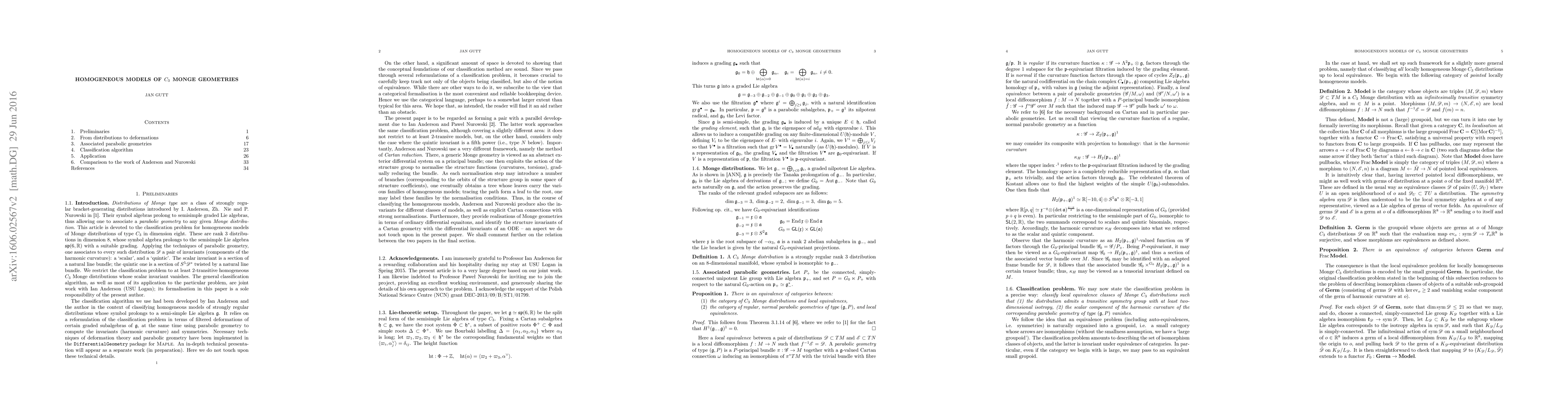 This paper classifies homogeneous models of C3 Monge geometries in eight dimensions, extending the work of Anderson and Nurowski, and utilizes a general classification algorithm developed jointly with Ian Anderson. The focus is on the specific case of Monge distributions of type C3.