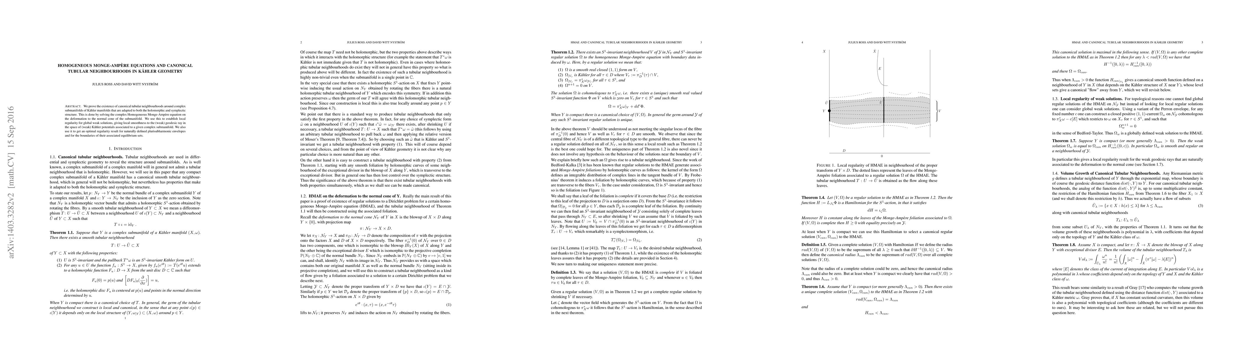 This paper proves the existence of canonical tubular neighbourhoods around complex submanifolds in Kähler manifolds, adapting to both holomorphic and symplectic structures. It achieves this by solving the complex Homogeneous Monge-Ampère equation on the deformation to the normal cone, establishing local regularity for global weak solutions and optimal regularity for plurisubharmonic envelopes.