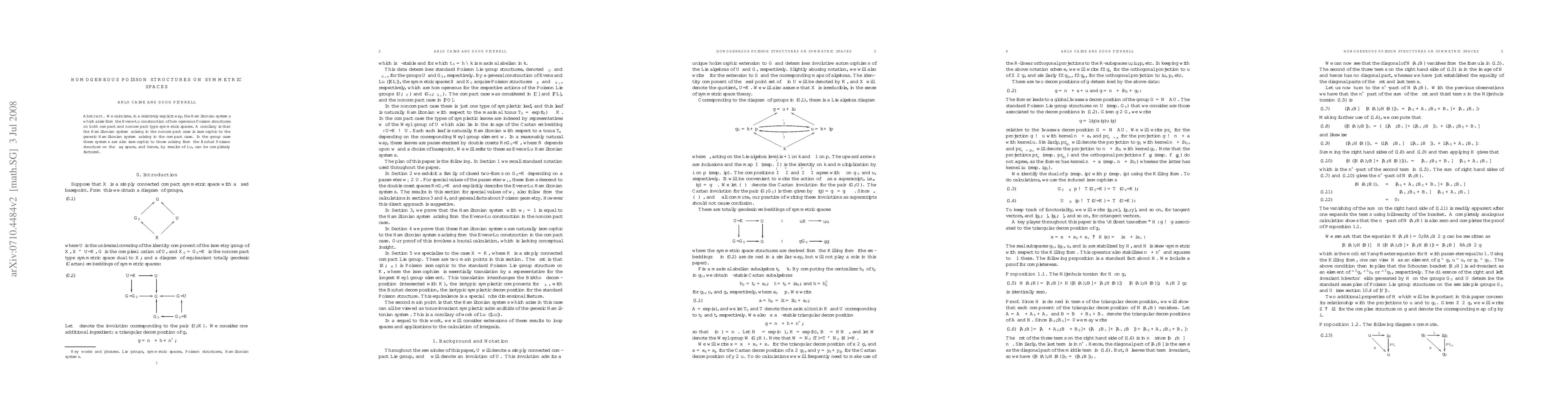 We calculate, in a relatively explicit way, the Hamiltonian systems which arise from the Evens-Lu construction of homogeneous Poisson structures on both compact and noncompact type symmetric spaces. A corollary is that the Hamiltonian system arising in the noncompact case is isomorphic to the generic Hamiltonian system arising in the compact case. In the group case these systems are also isomorphic to those arising from the Bruhat Poisson structure on the flag space, and hence, by results of Lu, can be completely factored.