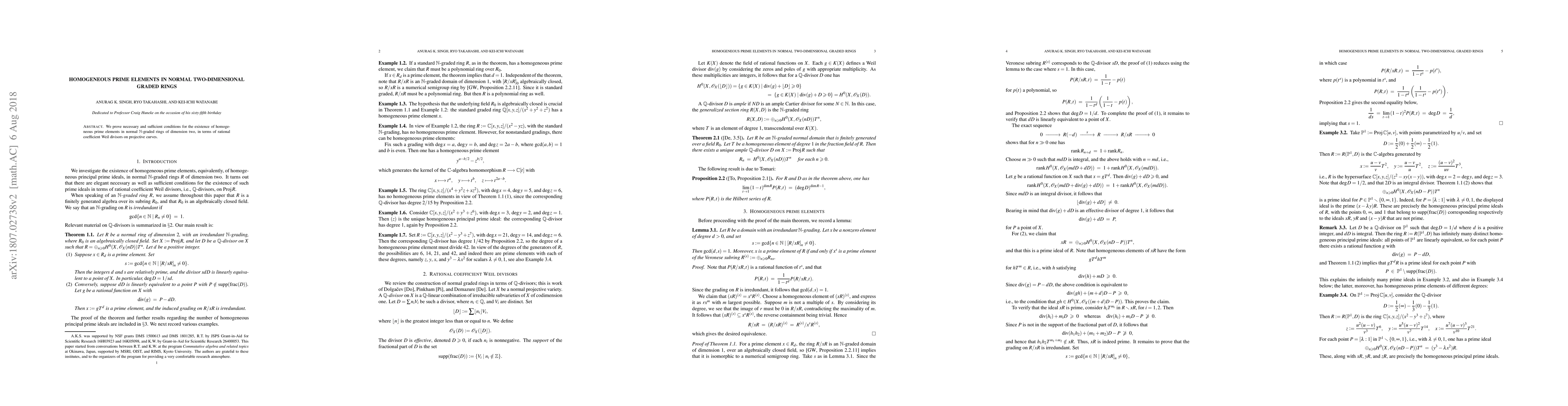 Summary: This paper establishes necessary and sufficient conditions for the presence of homogeneous prime elements in normal two-dimensional N-graded rings, linking these conditions to rational coefficient Weil divisors on projective curves.