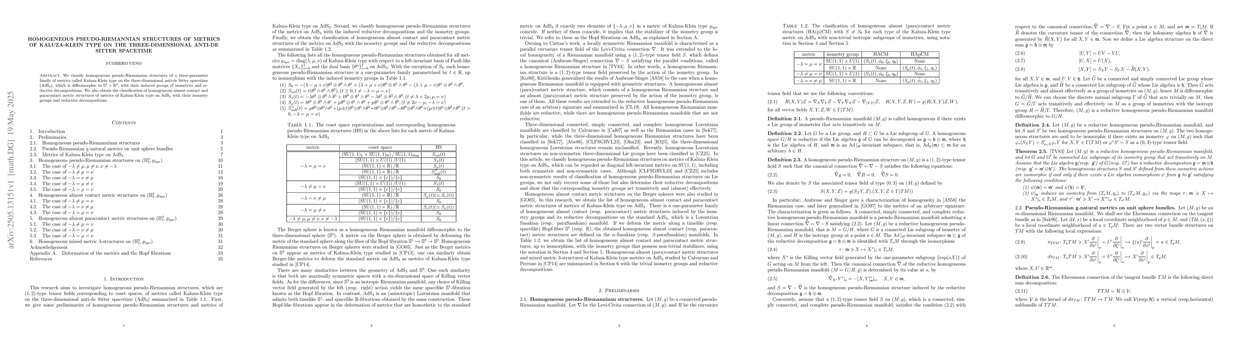 Researchers classified homogeneous pseudo-Riemannian structures on 3D anti-de Sitter spacetime based on Kaluza-Klein type metrics, focusing on induced groups of isometries and reductive decompositions.