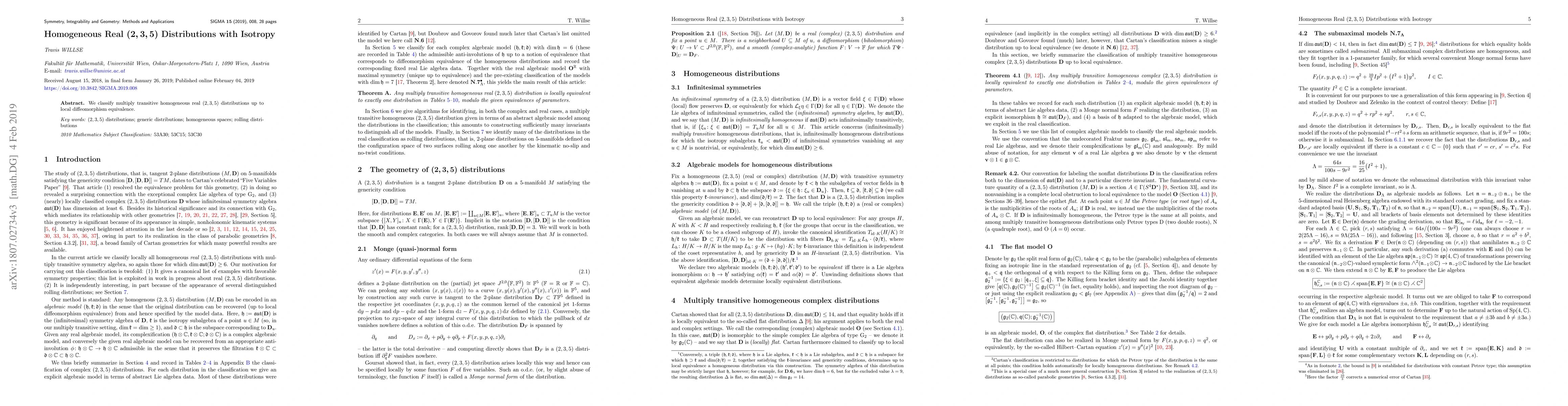 This paper classifies multiply transitive homogeneous real (2,3,5) distributions that exhibit isotropy, establishing equivalence up to local diffeomorphism. The focus is on understanding the structural properties and classification of such geometric distributions in real space.