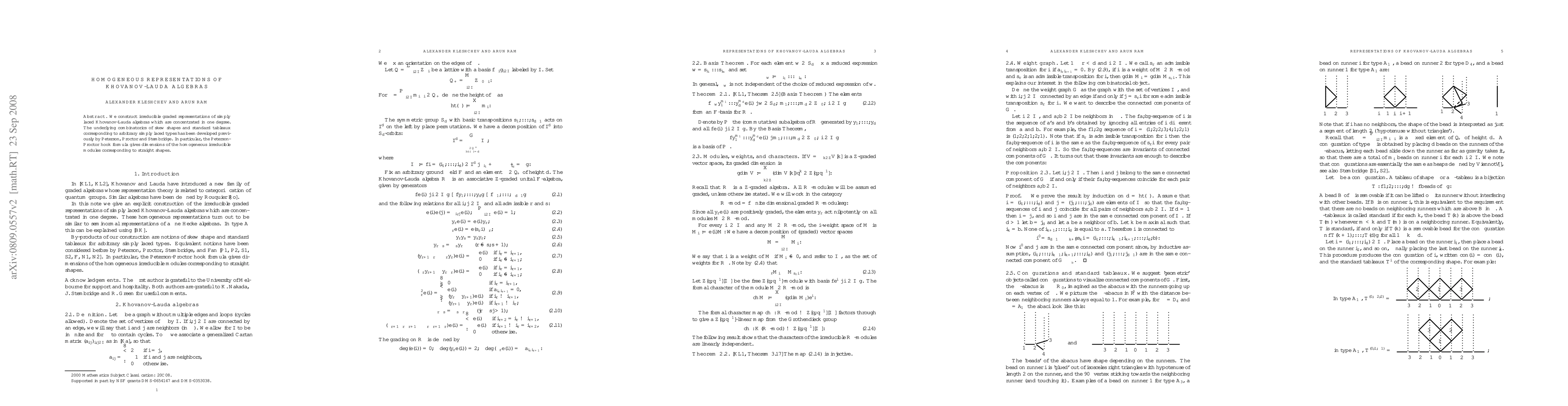 We construct irreducible graded representations of simply laced Khovanov-Lauda algebras which are concentrated in one degree. The underlying combinatorics of skew shapes and standard tableaux corresponding to arbitrary simply laced types has been developed previously by Peterson, Proctor and Stembridge. In particular, the Peterson-Proctor hook formula gives dimensions of the homogeneous irreducible modules corresponding to straight shapes.