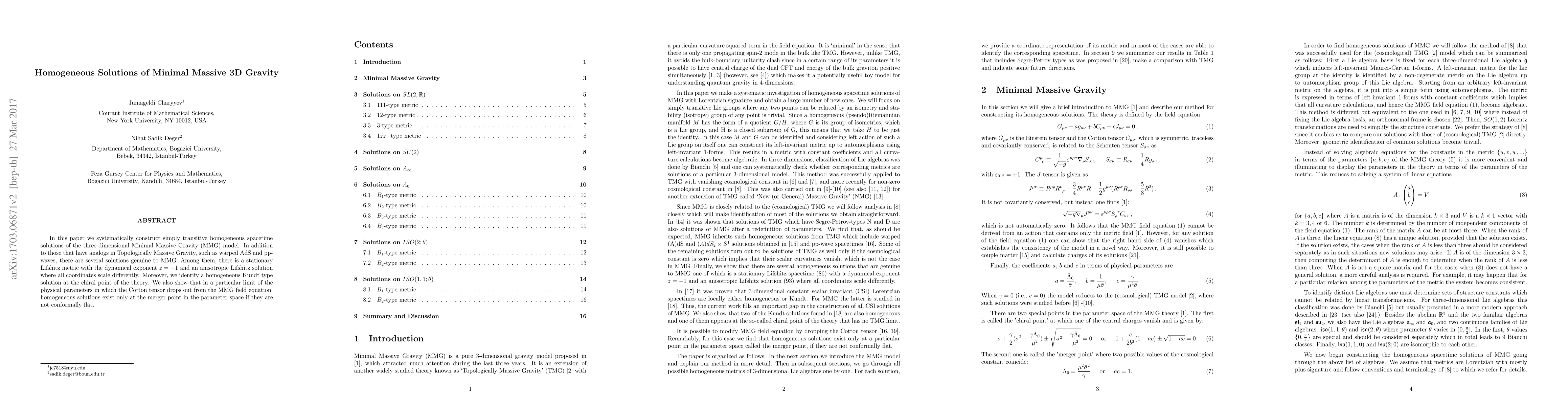 This paper constructs homogeneous spacetime solutions for Minimal Massive Gravity (MMG), including novel solutions like a stationary Lifshitz metric and an anisotropic Lifshitz solution. It also identifies a Kundt type solution and discusses the conditions under which homogeneous solutions exist.