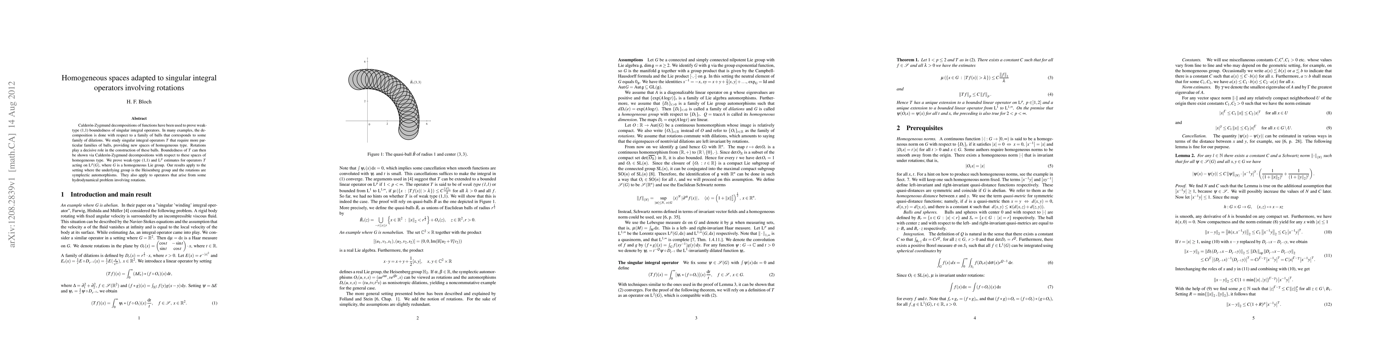This paper explores the homogeneous spaces adapted to singular integral operators involving rotations, providing new spaces for Calderon-Zygmund decompositions and weak-type (1,1) and LP^p estimates on homogeneous Lie groups.