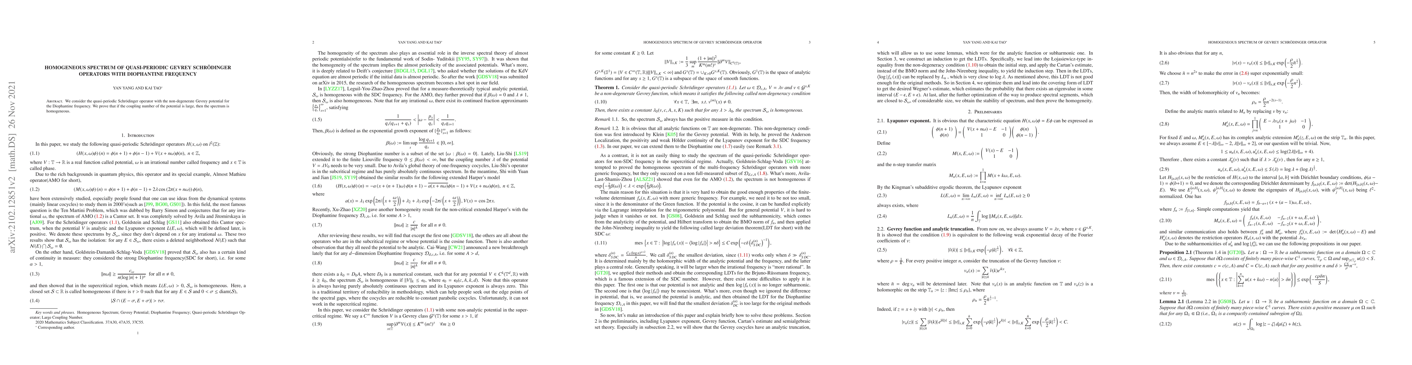 We consider the quasi-periodic Schr\"odinger operator with the non-degenerate Gevrey potential for the Diophantine frequency. We prove that if the coupling number of the potential is large, then the spectrum is homogeneous.