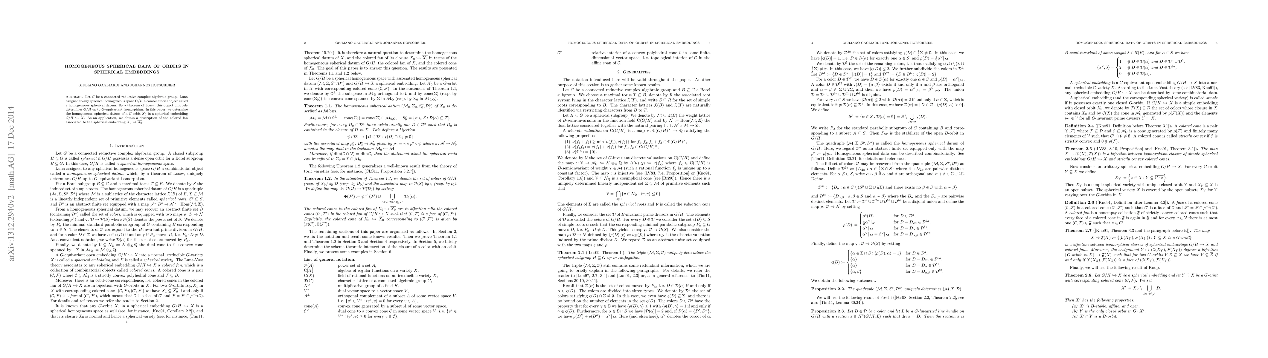 The paper presents a detailed analysis of homogeneous spherical data for orbits in spherical embeddings, providing a new perspective on colored fans and their relationship to spherical varieties.