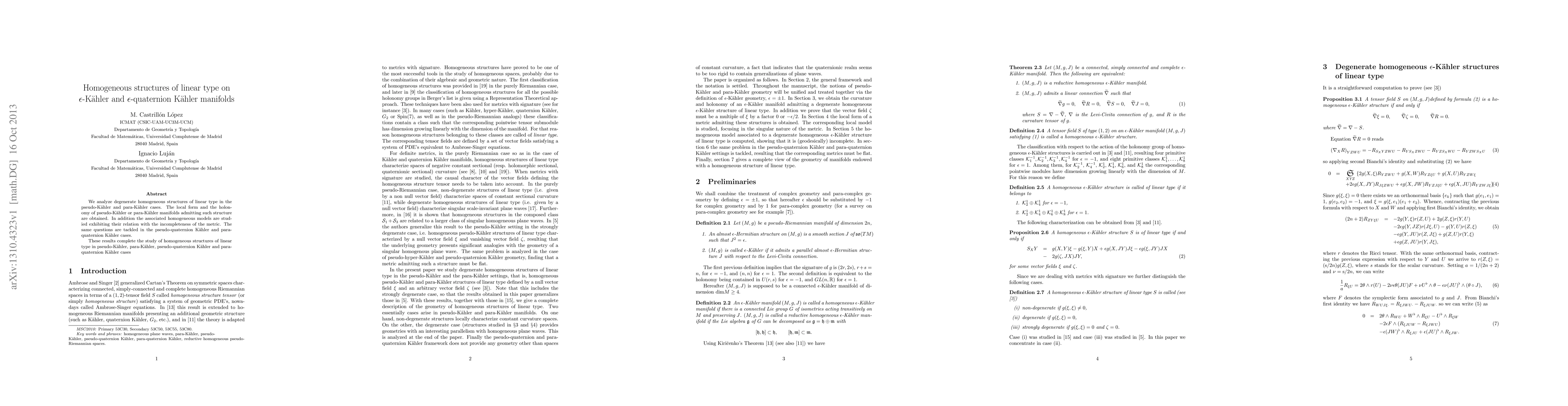 This research completes the study of homogeneous structures of linear type in various Kähler cases, providing a comprehensive understanding of these structures and their implications for the incompleteness of metrics in pseudo-Kähler, para-Kähler, pseudo-quaternion Kähler, and para-quaternion Kähler manifolds.