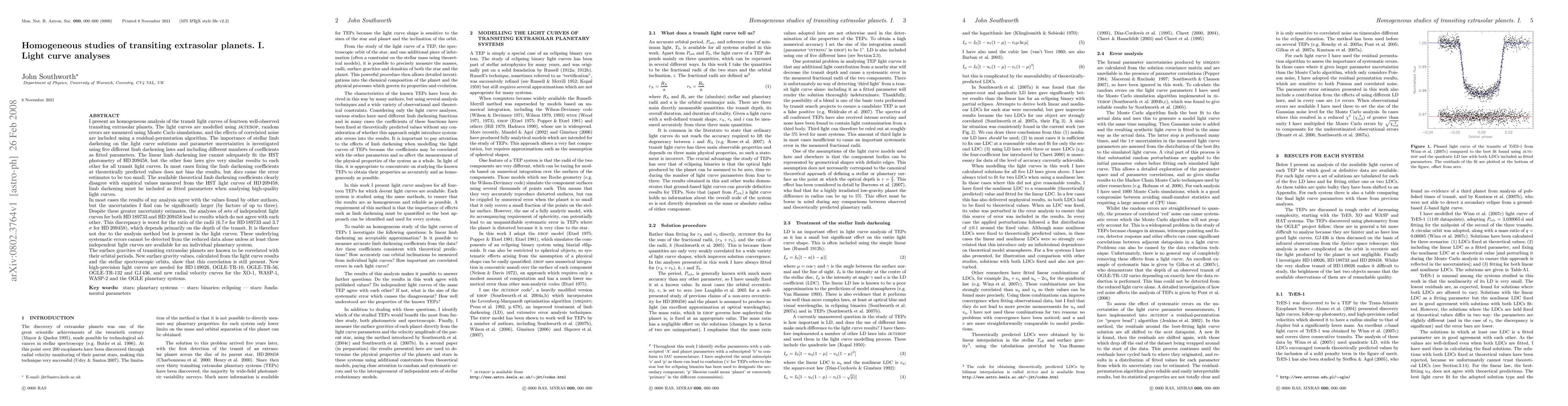 This study presents a homogeneous analysis of transit light curves for 14 extrasolar planets, revealing the importance of stellar limb darkening in light curve solutions and parameter uncertainties. The analysis shows discrepancies in the radii ratios of HD 189733 and HD 209458, suggesting underlying systematic errors in the light curves that cannot be detected from reduced data alone.