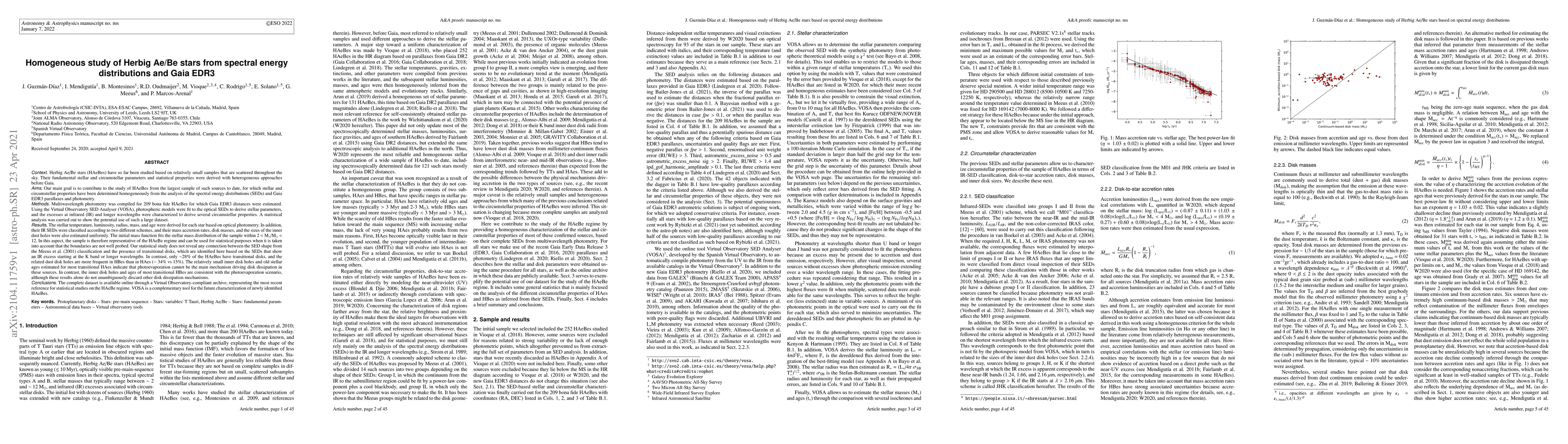 (Abridged) Herbig Ae/Be stars (HAeBes) have so far been studied based on relatively small samples that are scattered throughout the sky. Their fundamental stellar and circumstellar parameters and statistical properties were derived with heterogeneous approaches before Gaia. Our main goal is to contribute to the study of HAeBes from the largest sample of such sources to date, for which stellar and circumstellar properties have been determined homogeneously from the analysis of the spectral energy distributions (SEDs) and Gaia EDR3 parallaxes and photometry. Multiwavelength photometry was compiled for 209 bona fide HAeBes for which Gaia EDR3 distances were estimated. Using the Virtual Observatory SED Analyser (VOSA), photospheric models were fit to the optical SEDs to derive stellar parameters, and the excesses at infrared (IR) and longer wavelengths were characterized to derive several circumstellar properties. The stellar temperature, luminosity, radius, mass, and age were derived for each star based on optical photometry. In addition, their IR SEDs were classified according to two different schemes, and their mass accretion rates, disk masses, and the sizes of the inner dust holes were also estimated uniformly. The initial mass function fits the stellar mass distribution of the sample within 2 < M_star/M_sun < 12. In this aspect, the sample is therefore representative of the HAeBe regime and can be used for statistical purposes when it is taken into account that the boundaries are not well probed. A statistical analysis was carried out mainly focused on the different circumstellar properties of Herbig Ae (HAe) and Be (HBe) stars. The complete dataset is available online through a Virtual Observatory-compliant archive, representing the most recent reference for statistical studies on the HAeBe regime.