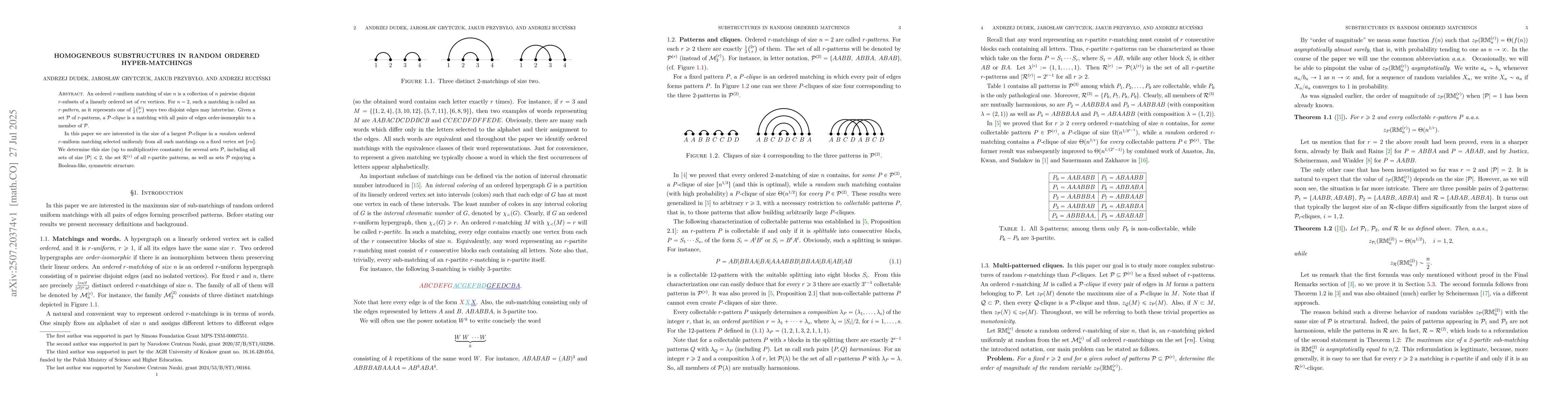 The paper introduces a method for determining the size of largest homogeneous substructures in random ordered hyper-matchings, utilizing combinatorial tools and probabilistic techniques.